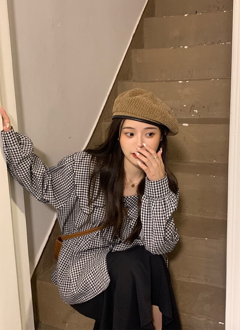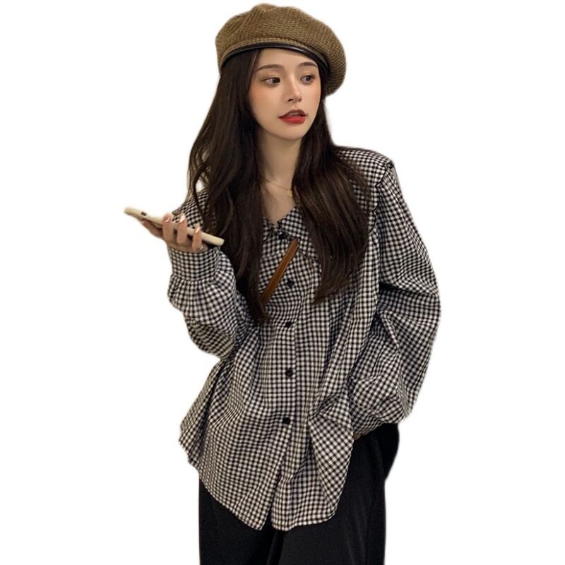 カラー格子柄シャツ スプリングゆったり ロング レッド 春物 長袖 コーデ Marchs21139337917