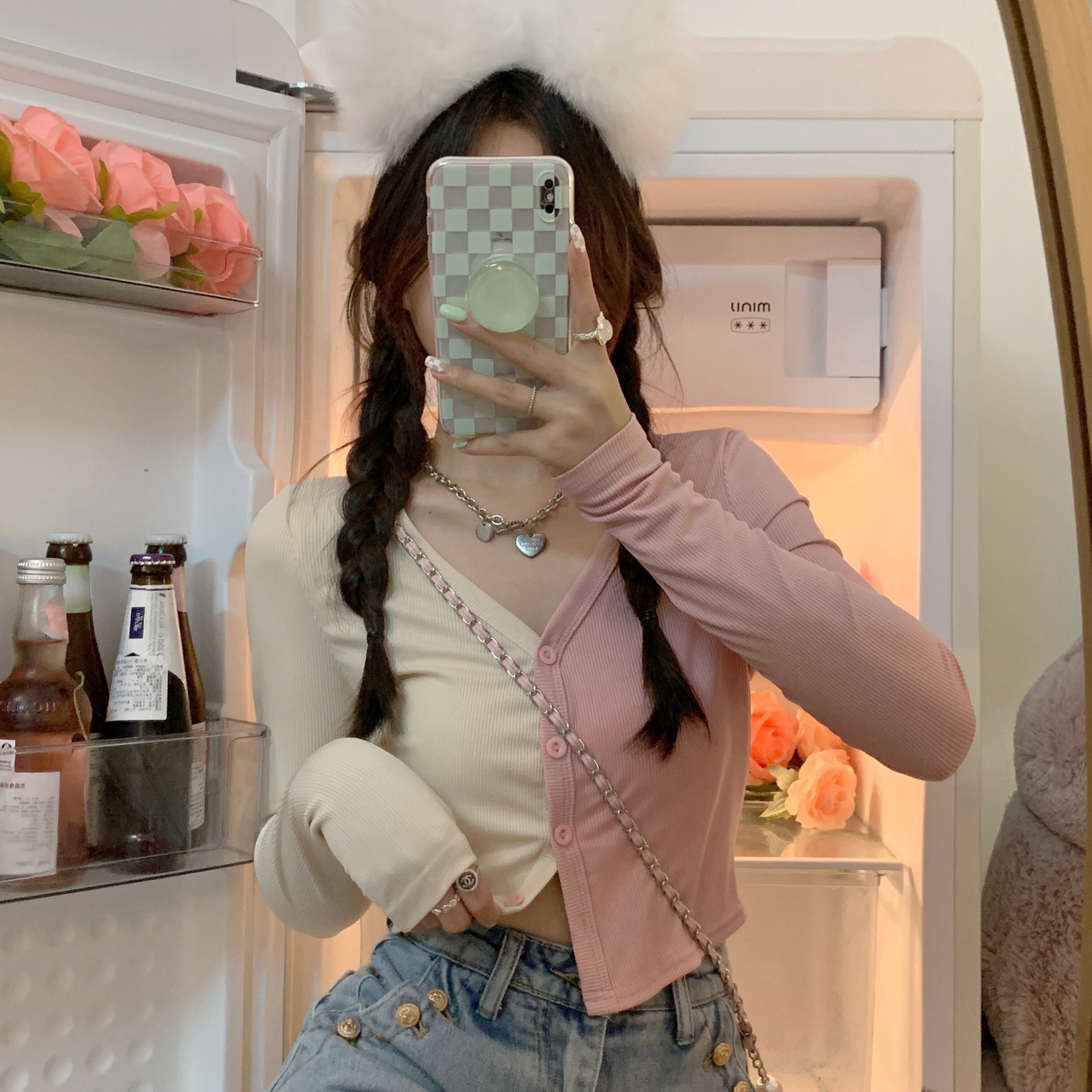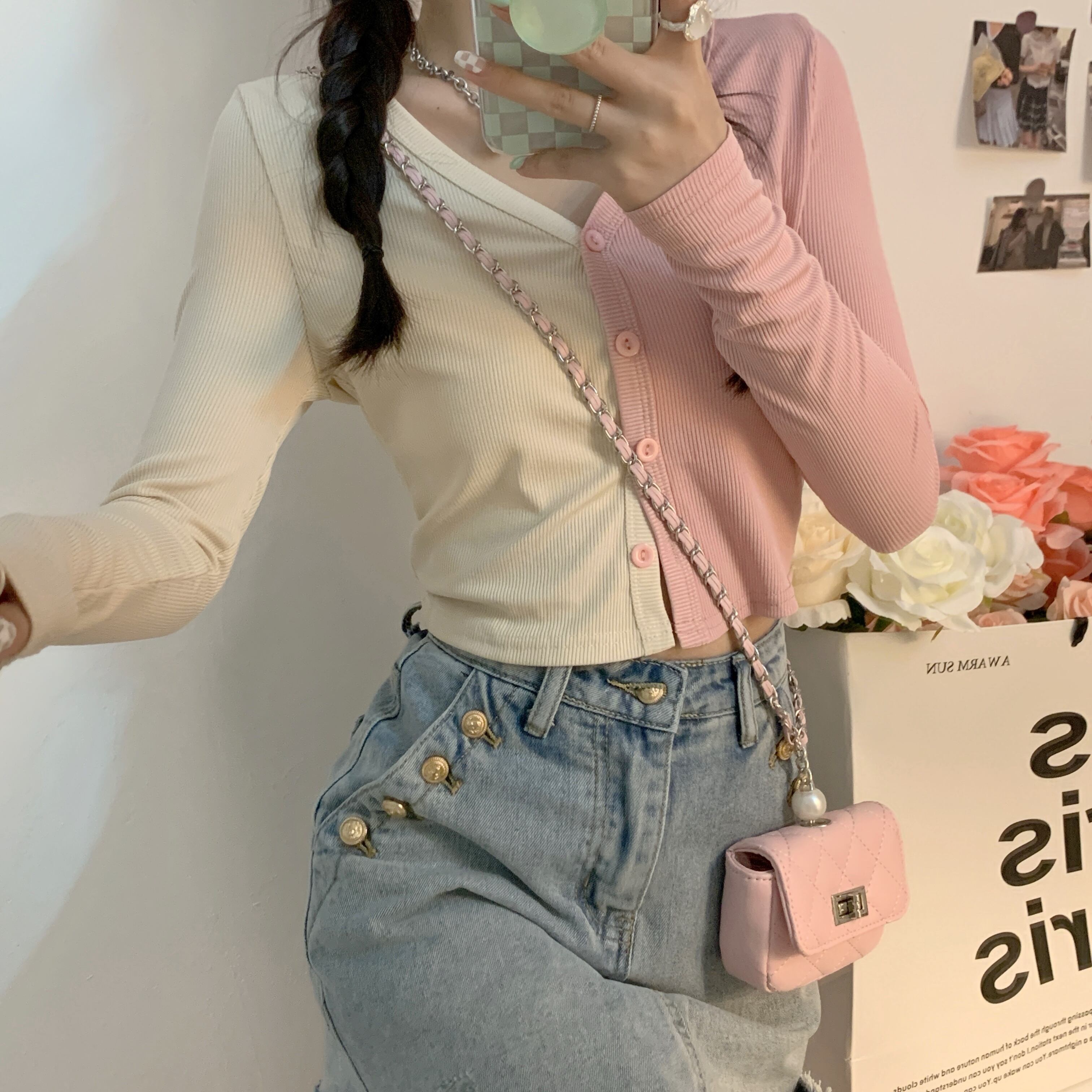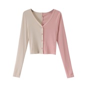 カラーVネックニットカーディガン夏服ショートトップス ハイウェストウェストパンツ 夏物 ウエスト コーデ Marchs57756184251