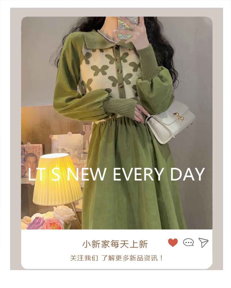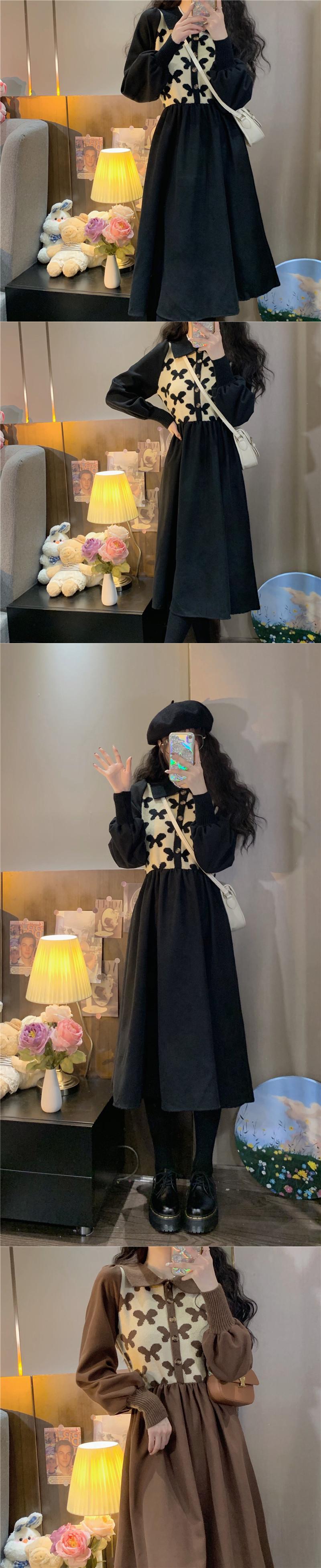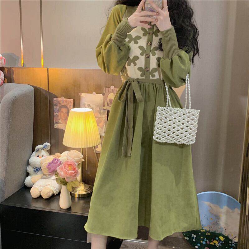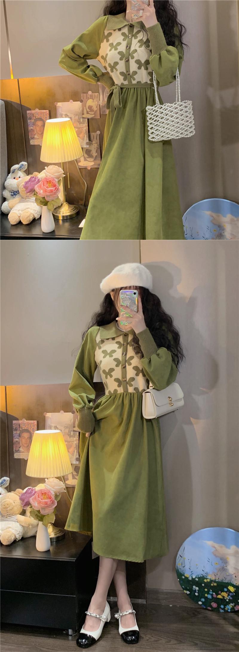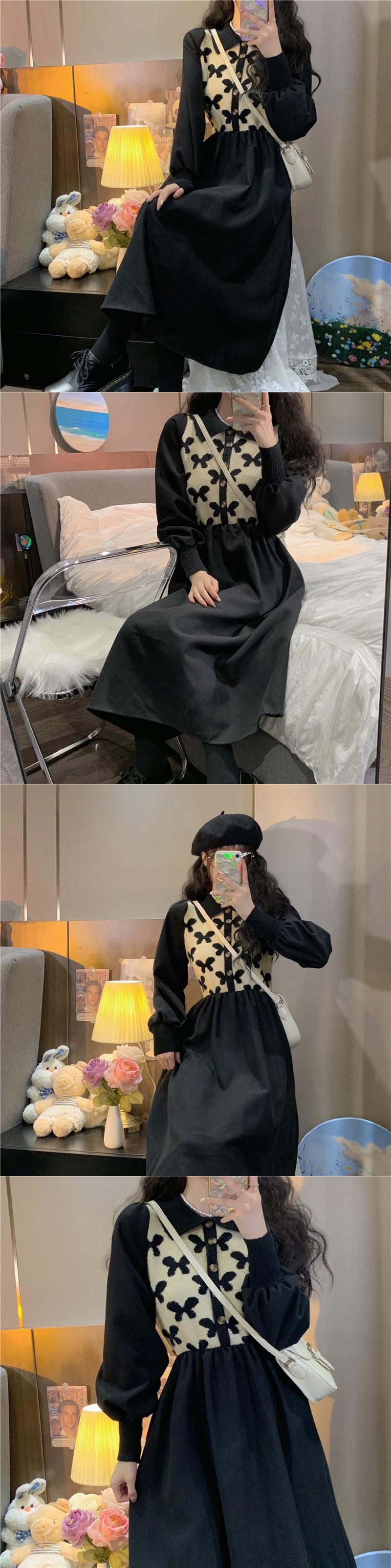 スタンダードニットワンピースレディーススタイルロングスカート レトロ エレガント ステッチ コーデ Marchs72172814823