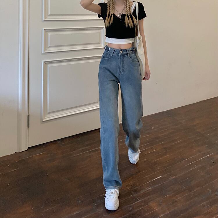 ジーンズ 夏服スタンダードスリムカジュアルパンツ レトロ 夏物 ウエスト コーデ Marchs64619838482