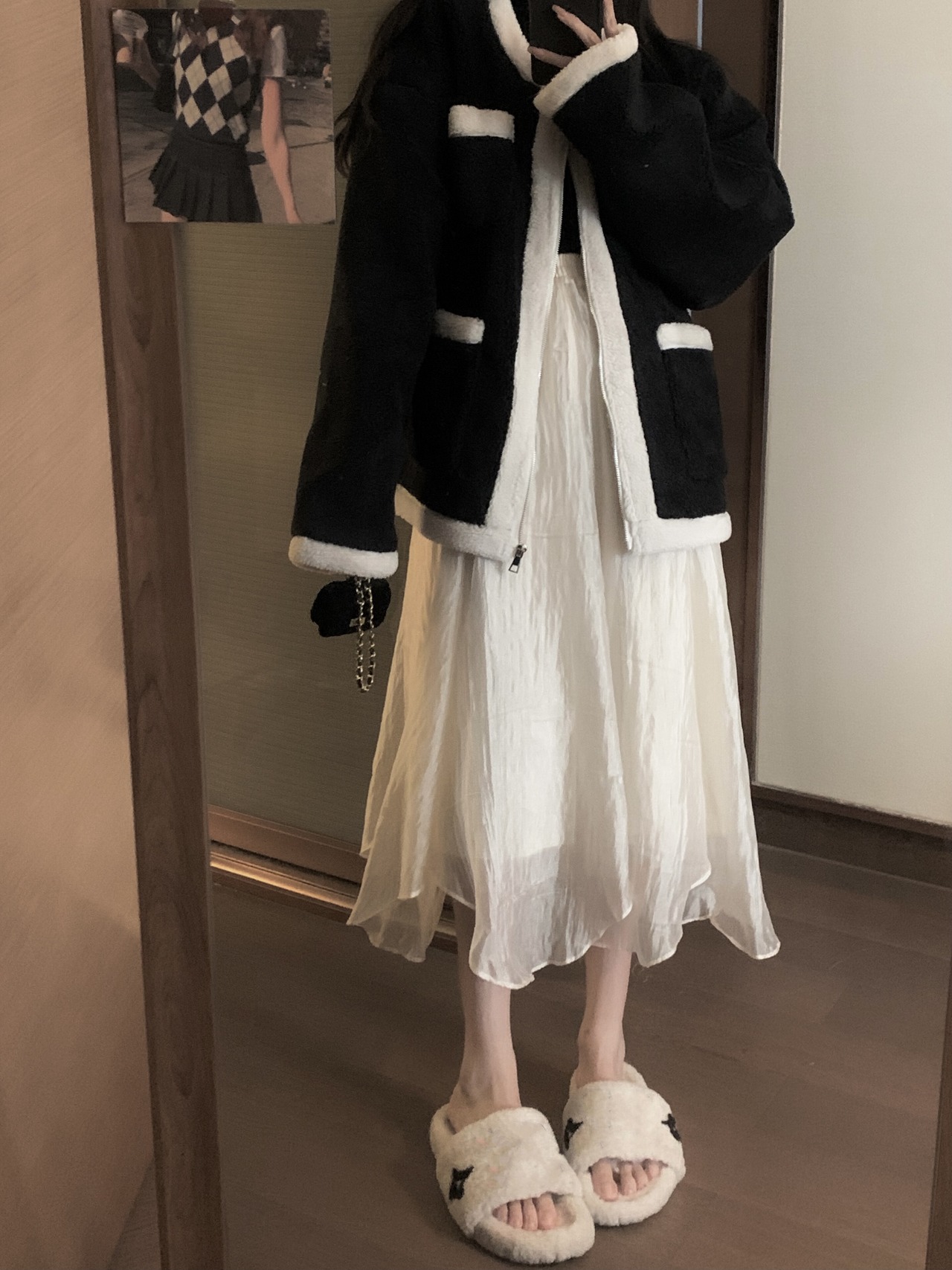 ホワイトスカート ウィンターハイウェストウェストAラインロングセーター 冬物 ウエスト ミドル丈 コーデ Marchs73551866450