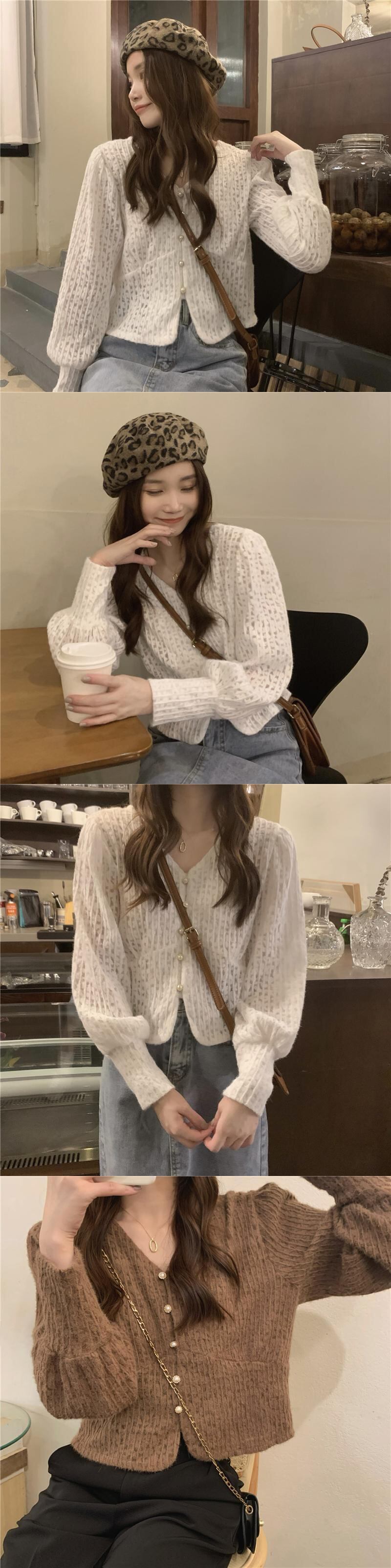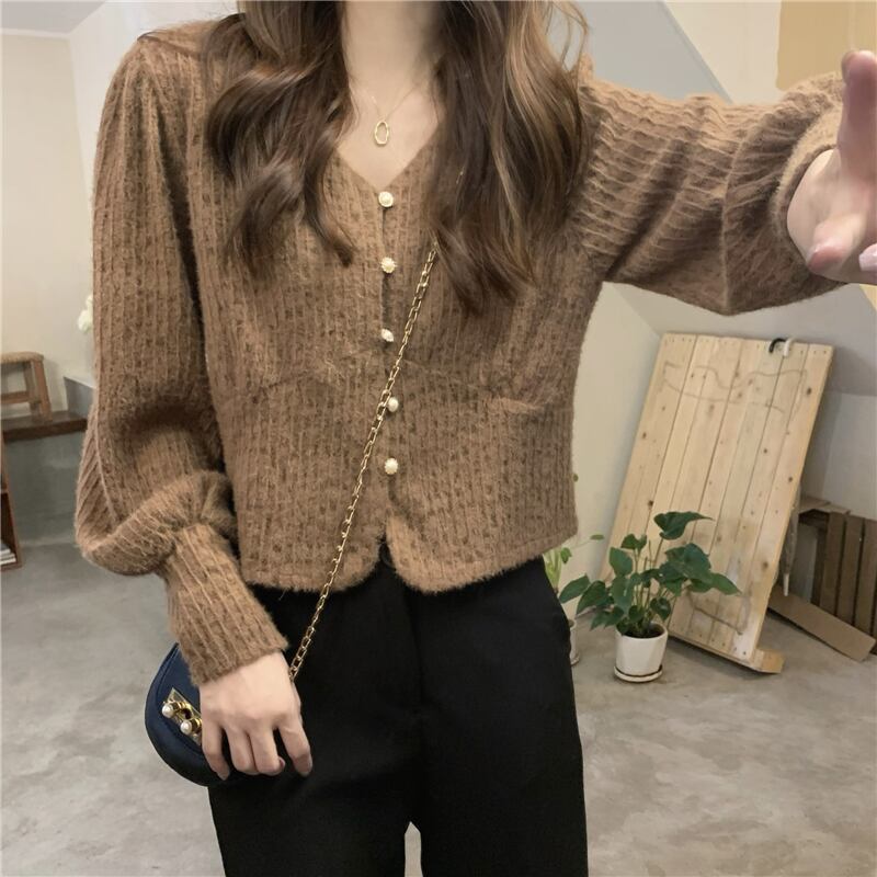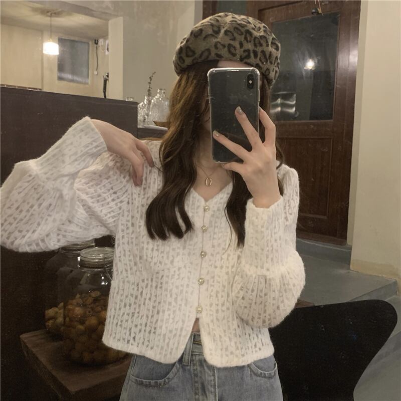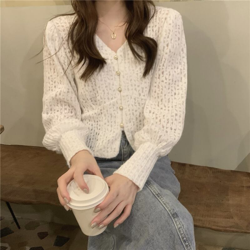 スプリングスタンダードショートシャツ Vネックレーストップス ロング レトロ 春物 長袖 コーデ Marchs80622093013