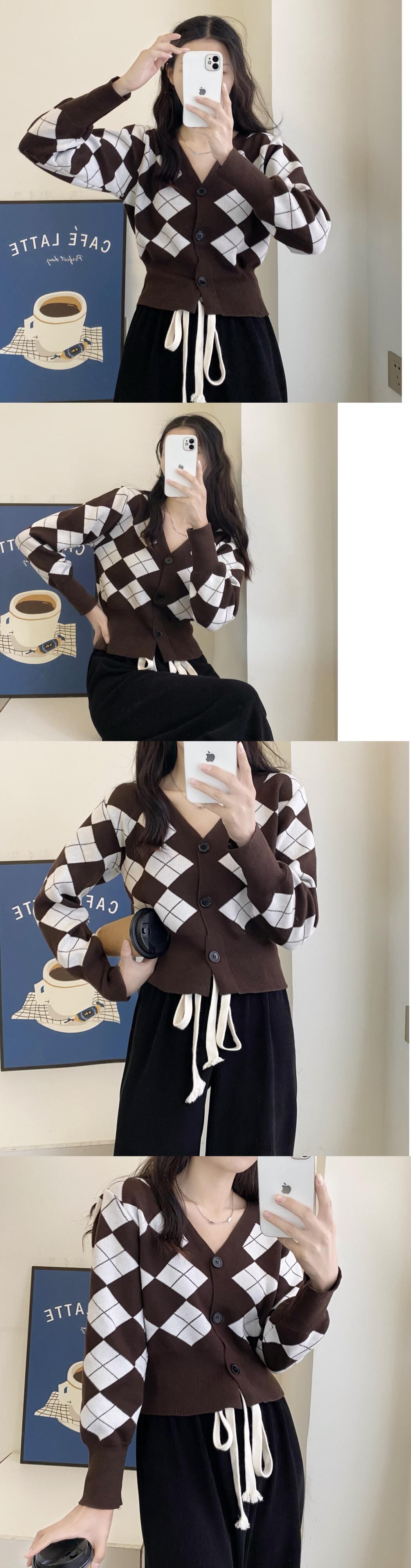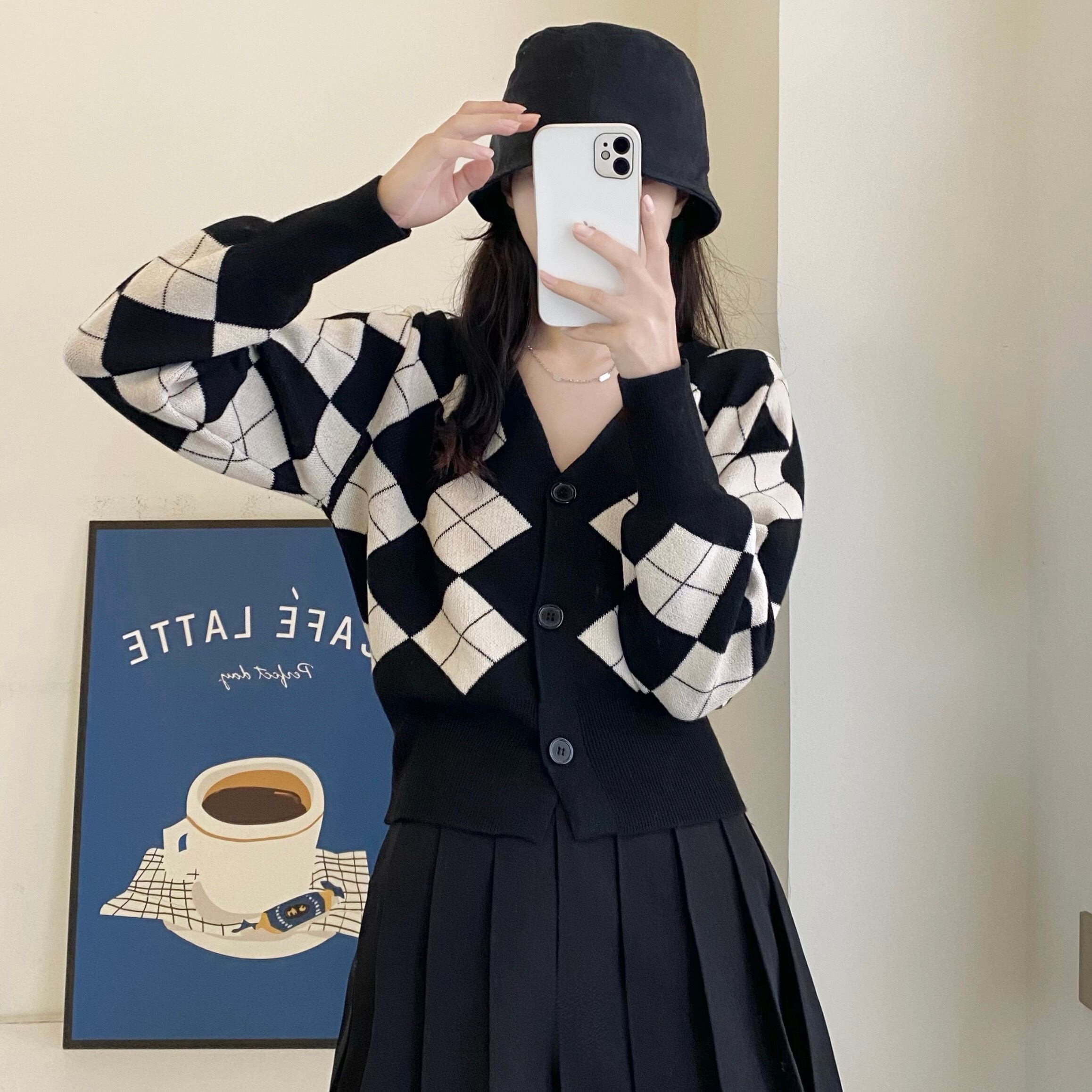 スタイルスタンダードVネックニットカーディガン夏服ショートセーター コート トップス レトロ 夏物 コーデ Marchs15314429262
