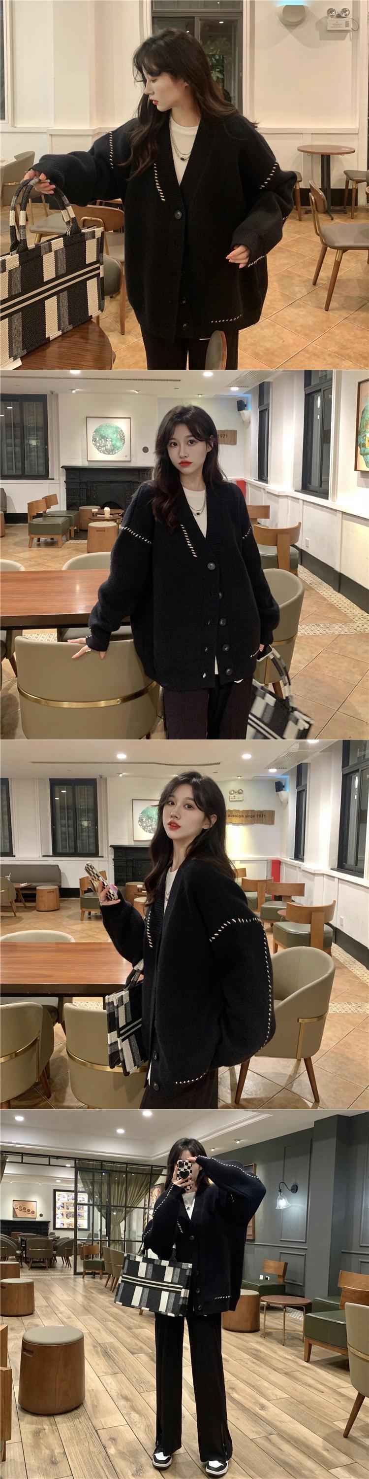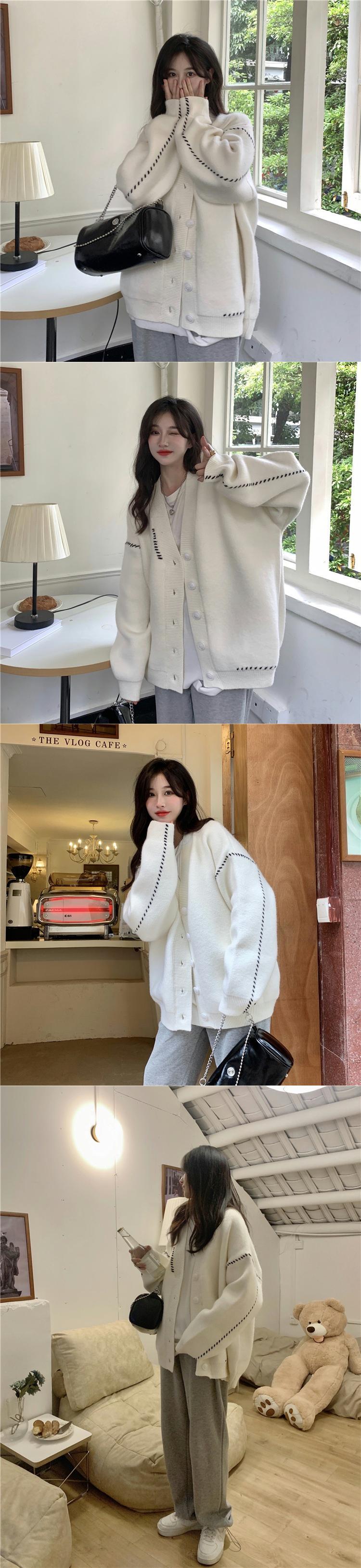 ホワイトセーター ニットカーディガンスプリング秋物ジャケット 韓国ファッションカジュアルルーズスタイル 春物 オータム コーデ Marchs68417263894