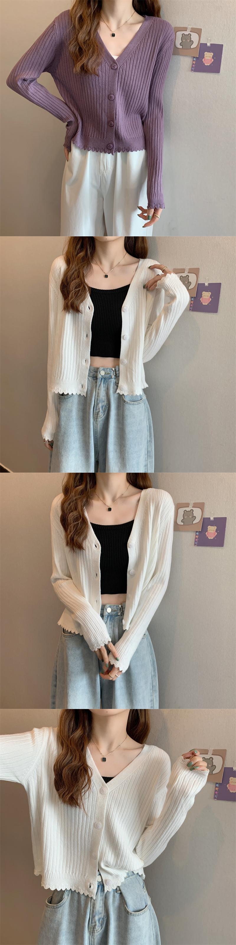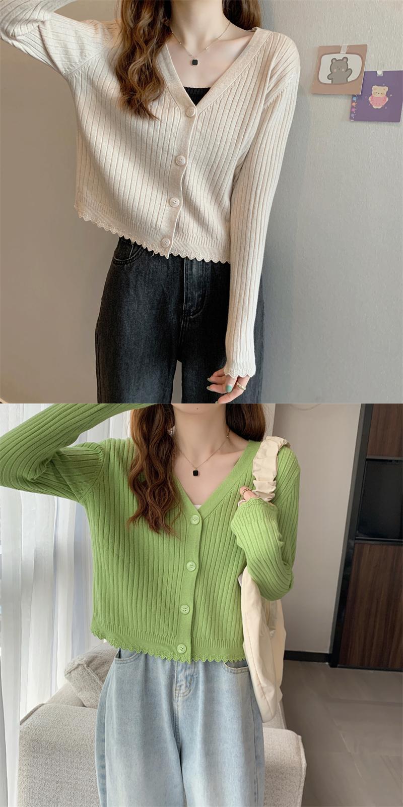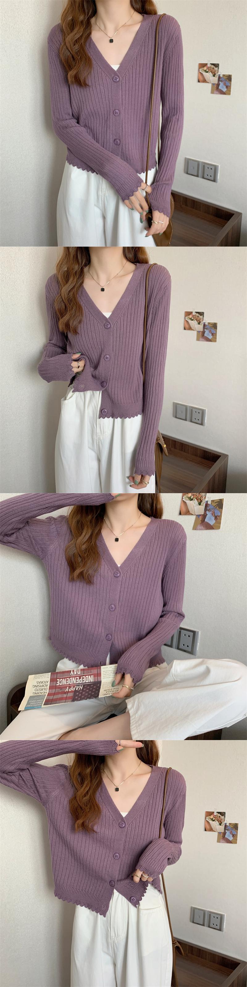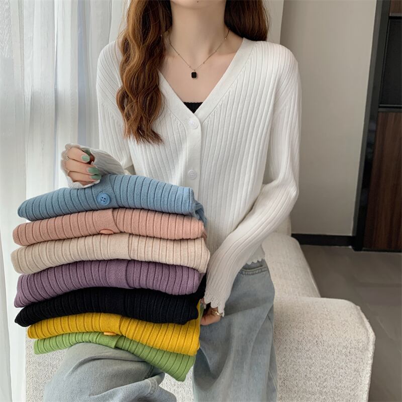 Vネックニットセーター スプリング秋物ルーズブルーショートカーディガン 春物 オータム コーデ Marchs300378128