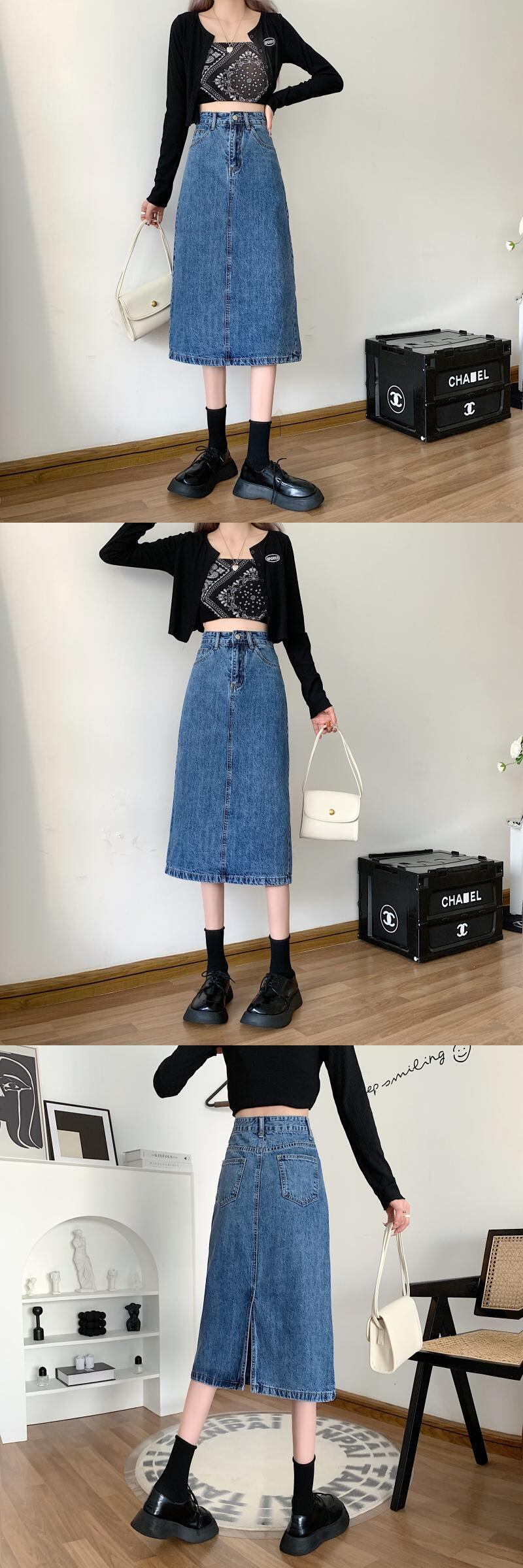 スプリングハイウェストスカート Aライン薄手 春物 ウエスト ミドル丈 コーデ Marchs60656234429