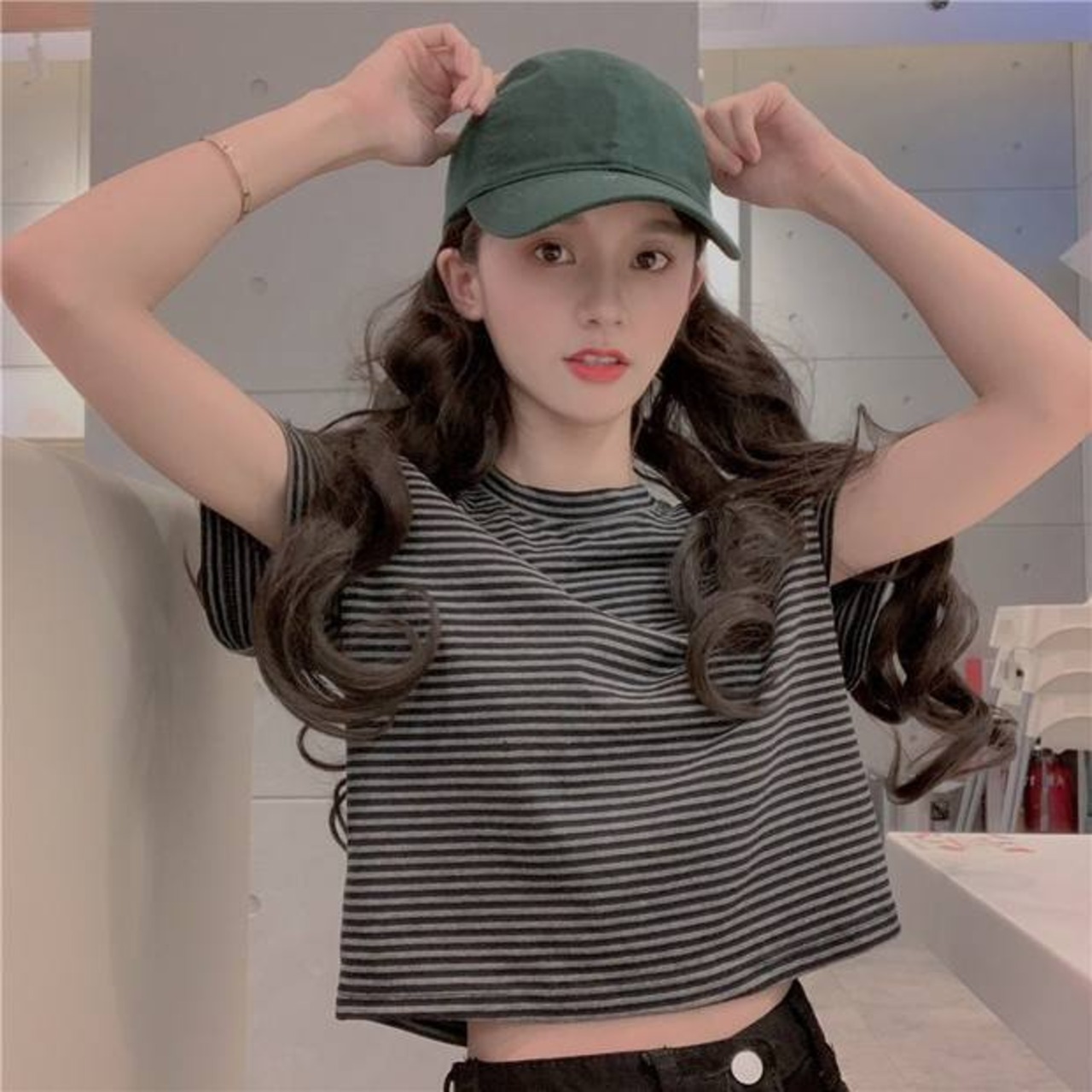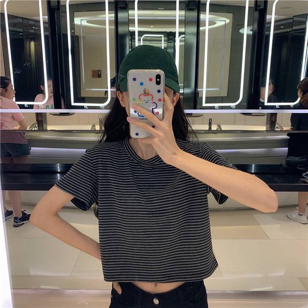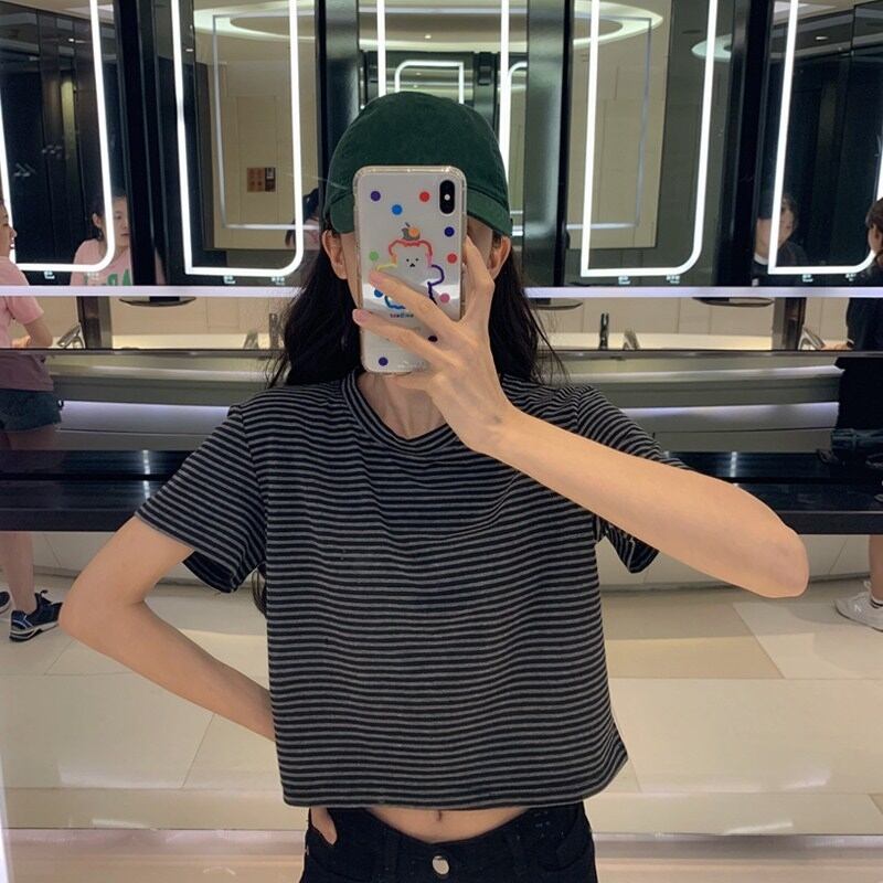 スプリング韓国ファッションクロップドスリムフィット薄手ショートTシャツトップス NEW コットン 春物 ピュア スタイル コーデ Marchs66819791353