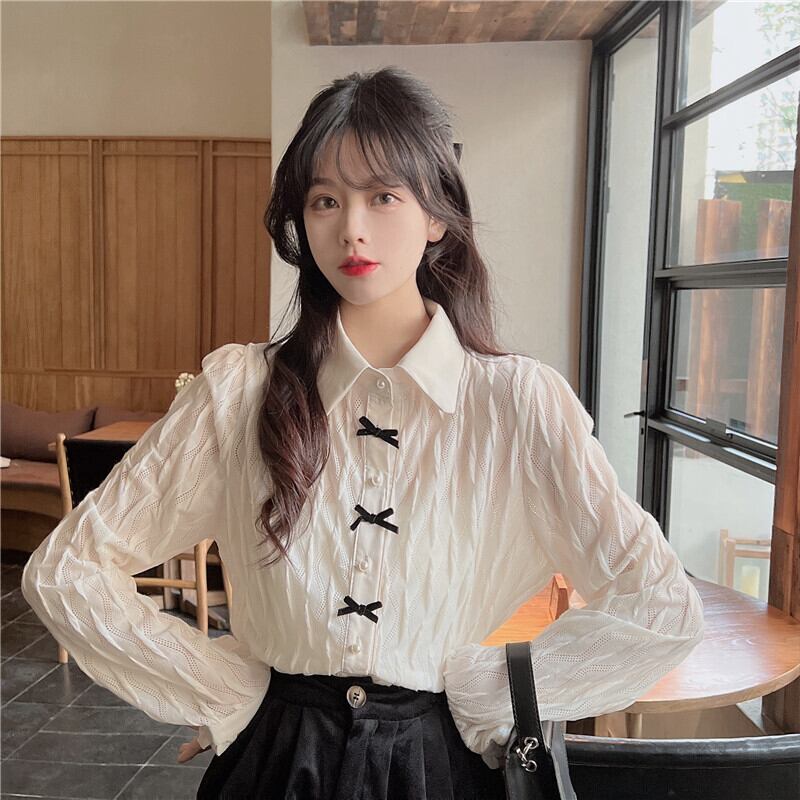 リボンレースシャツ スプリング秋物韓国ファッショントップス 春物 オータム スタイル コーデ Marchs66074185980