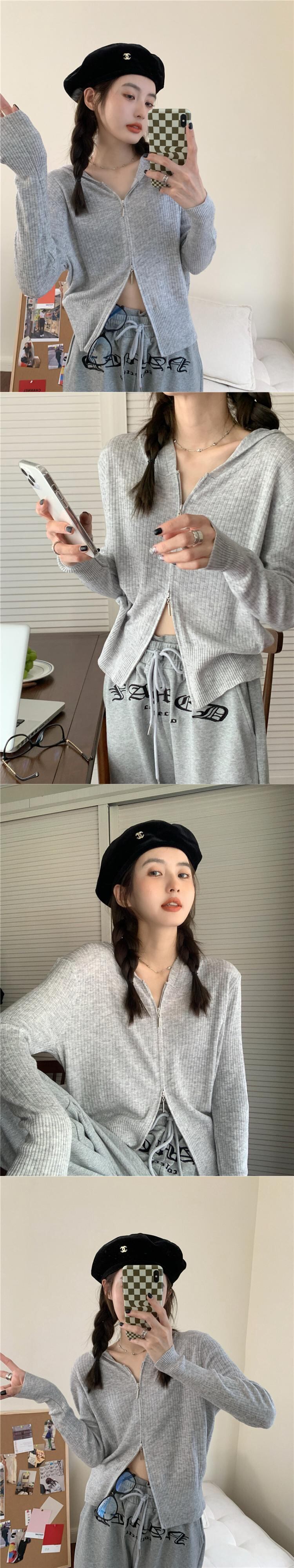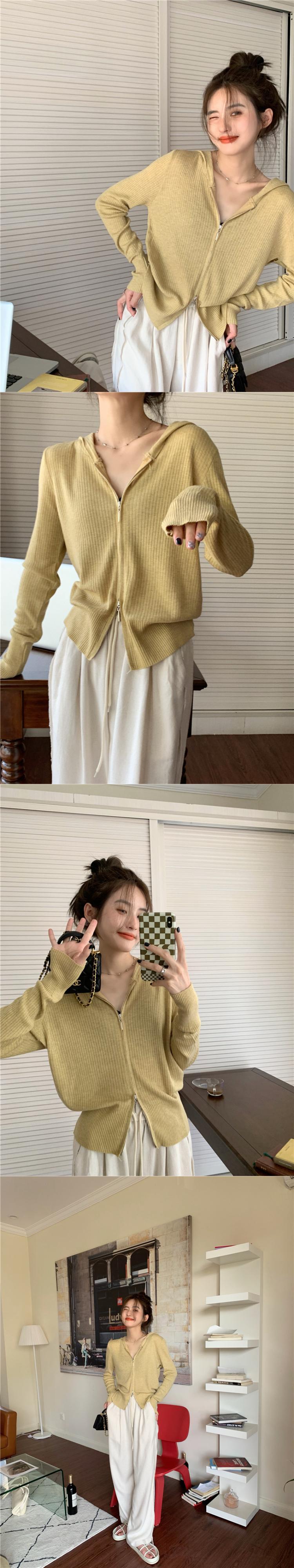 ニットカーディガンジャケット 夏服薄手ダブルジッパーフードショートトップス NEW ロング 夏物 長袖 コーデ Marchs68535940209