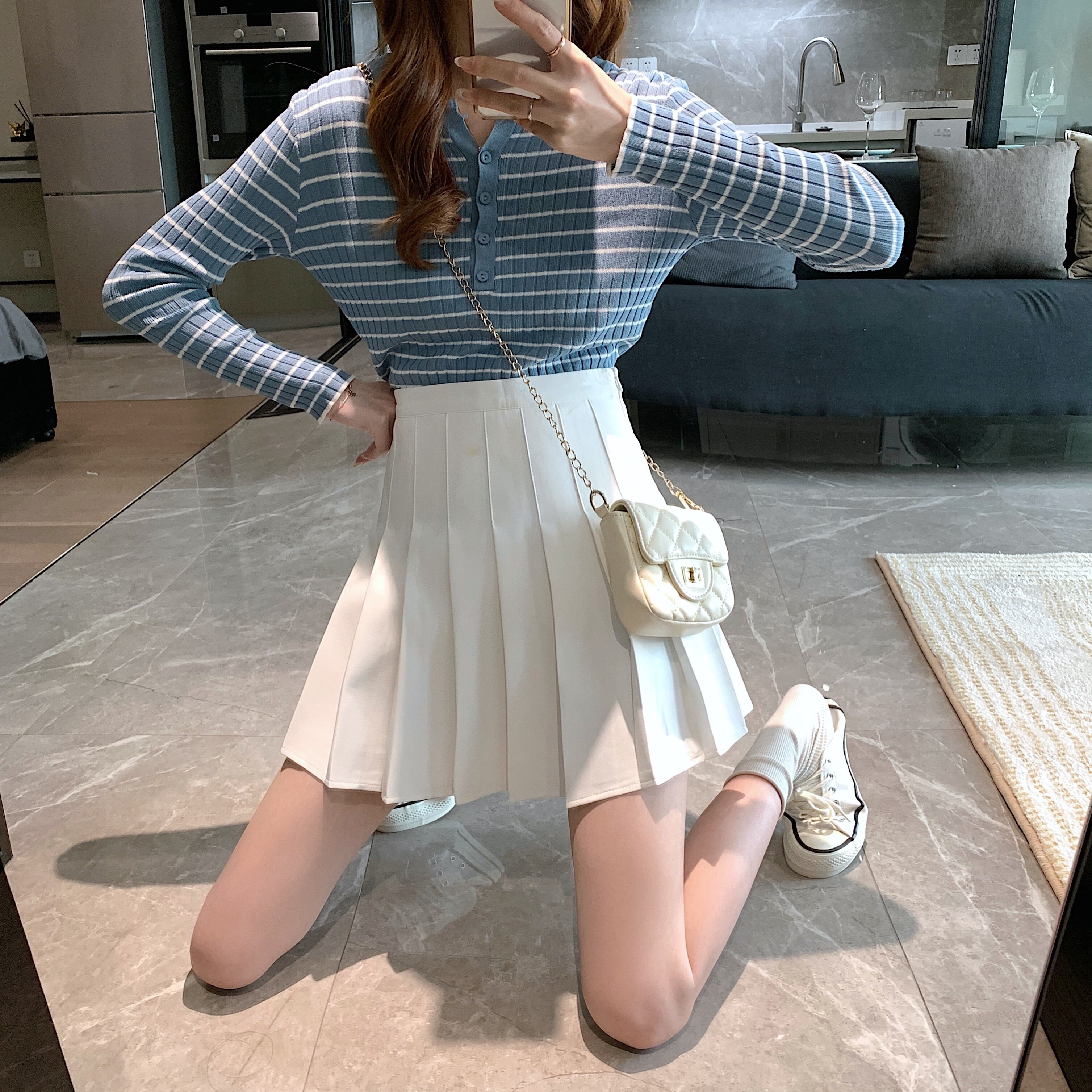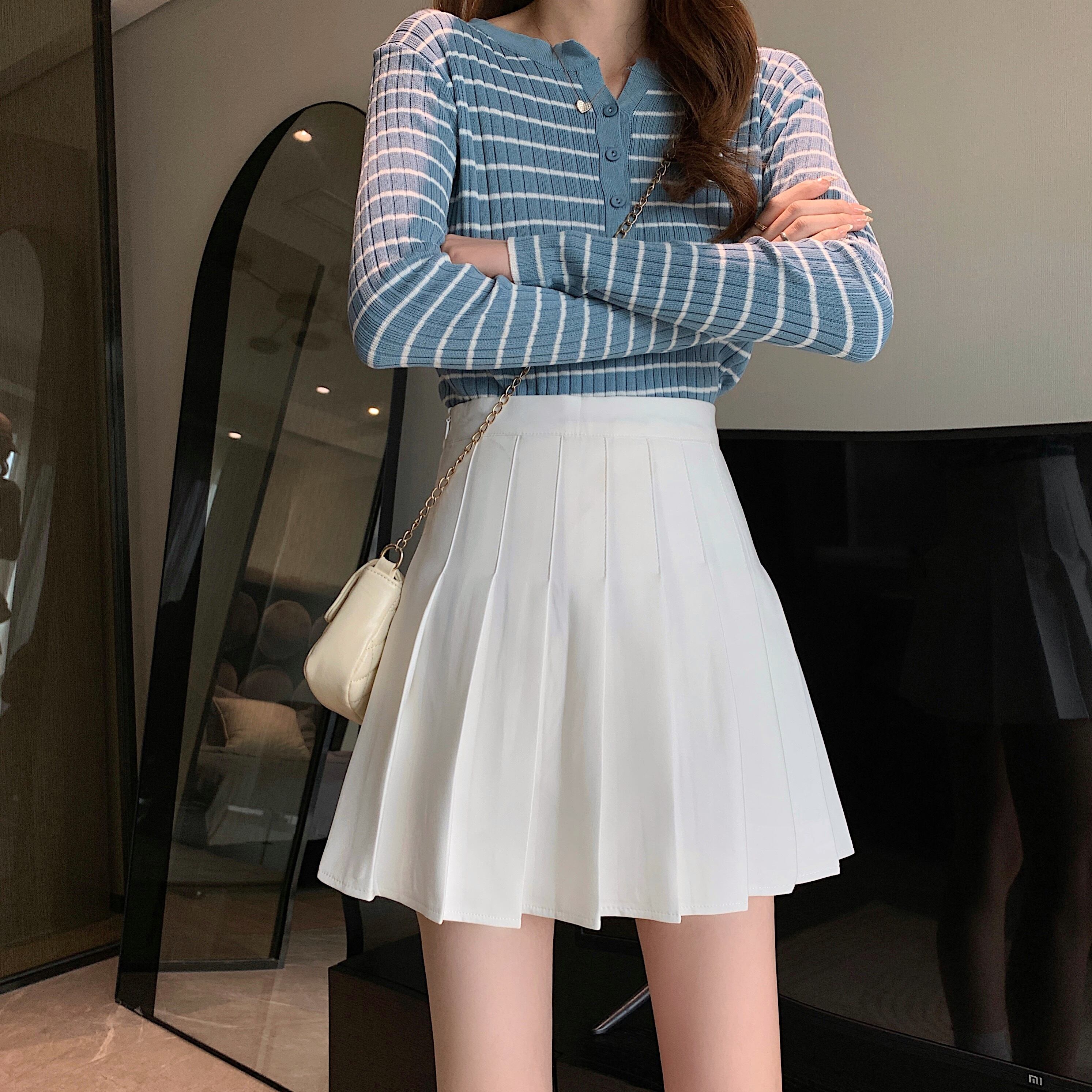 ホワイトプリーツスカート スプリング秋物ハイウェストウェストAラインショートウィンターセーター 春物 オータム 冬物 ウエスト コーデ Marchs25305210842