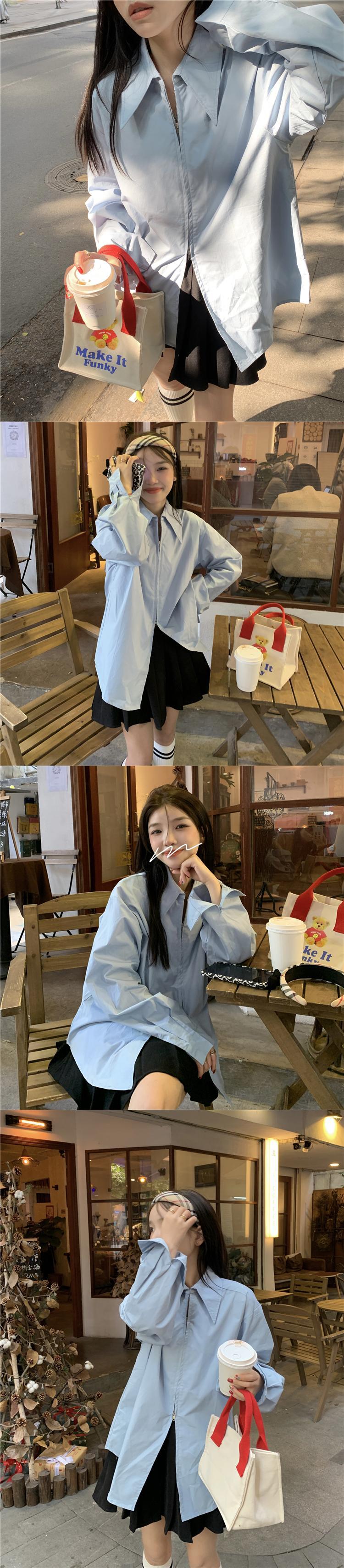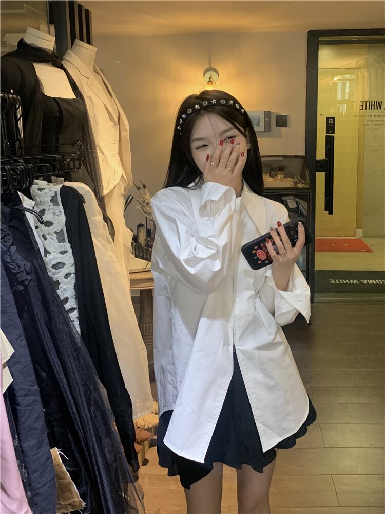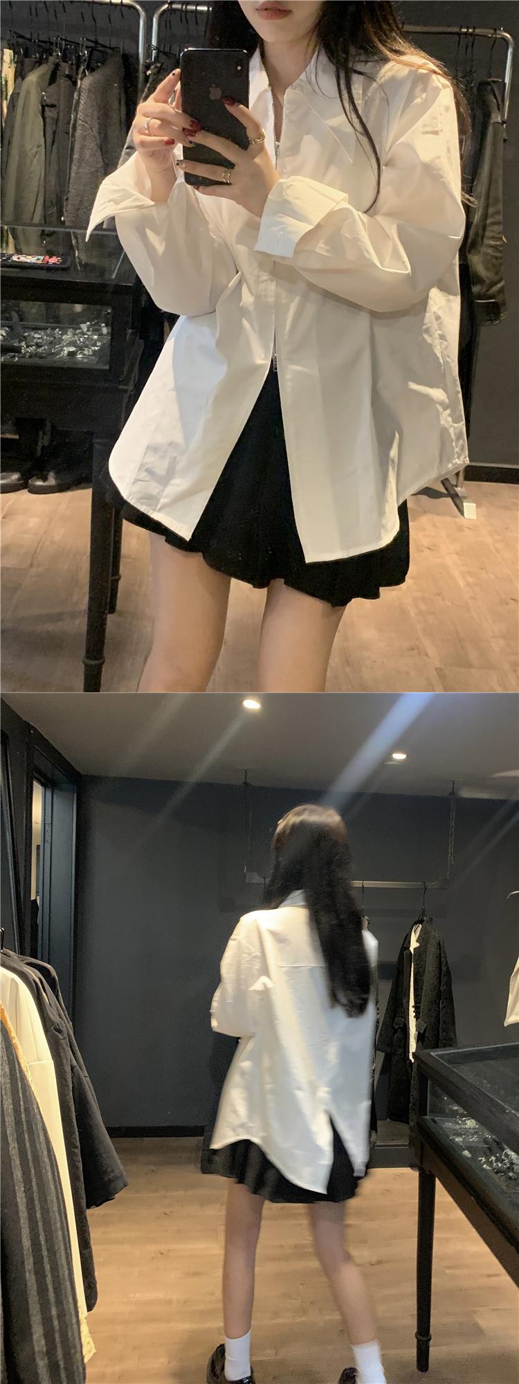 ダブルジッパーバックスリットホワイトシャツ トップス ルーズジャケット ロング 長袖 コーデ Marchs54448045529