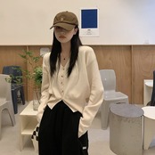 トップス ショート韓国ファッションVネックニットゆったりシャツ セーター カーディガン 大人ガーリー スウィート キュート カジュアル コーデ Marchs99523114234