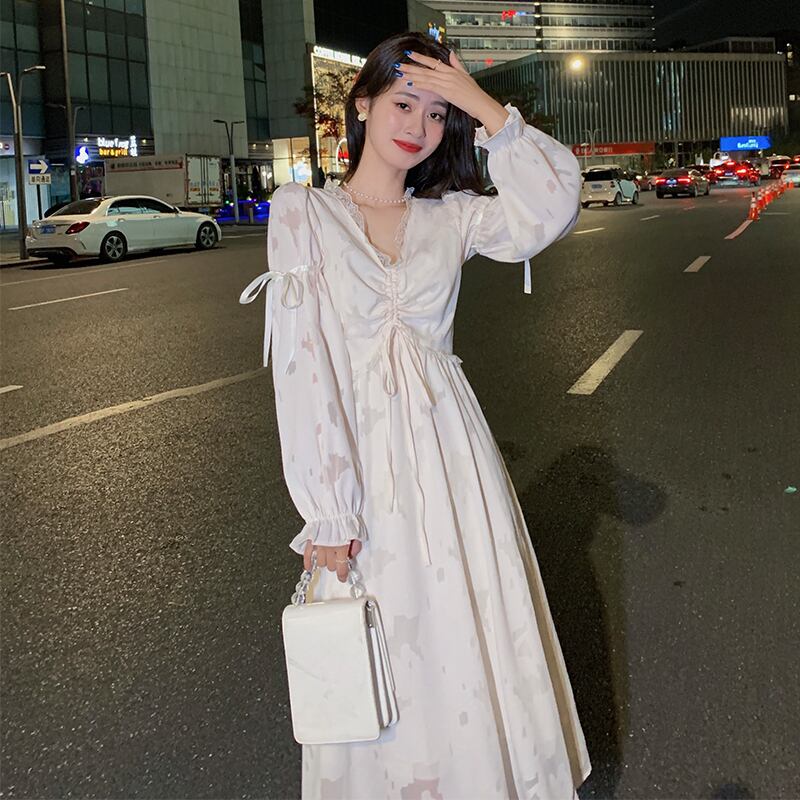 スプリング秋物ロングゆったりワンピースレディーススカート 大人ガーリー スウィート キュート カジュアル 春物 オータム 長袖 コーデ Marchs61736222568