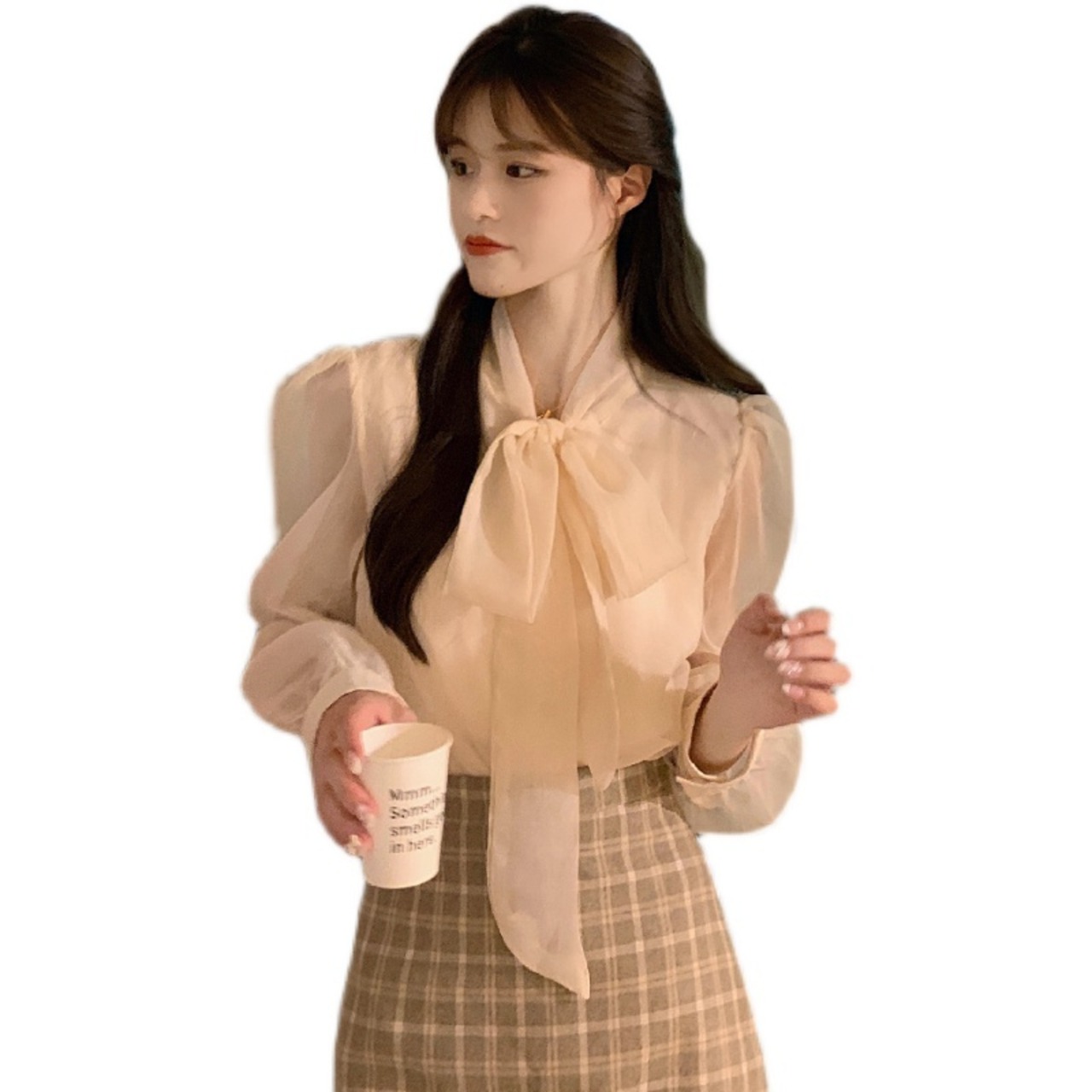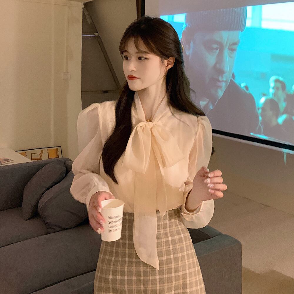 リボンシャツ スプリングシフォントップス ロング 春物 長袖 コーデ Marchs35436386983