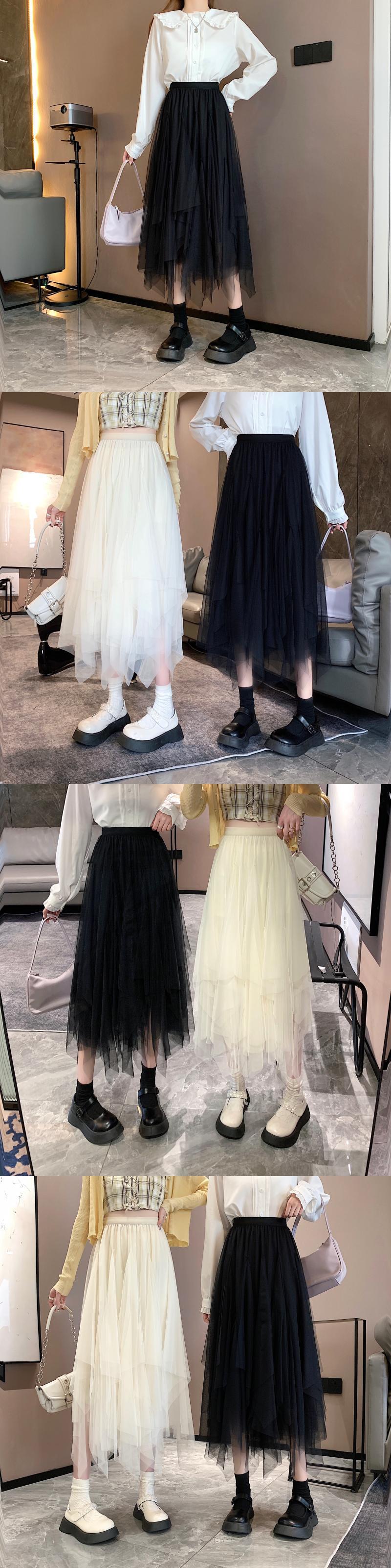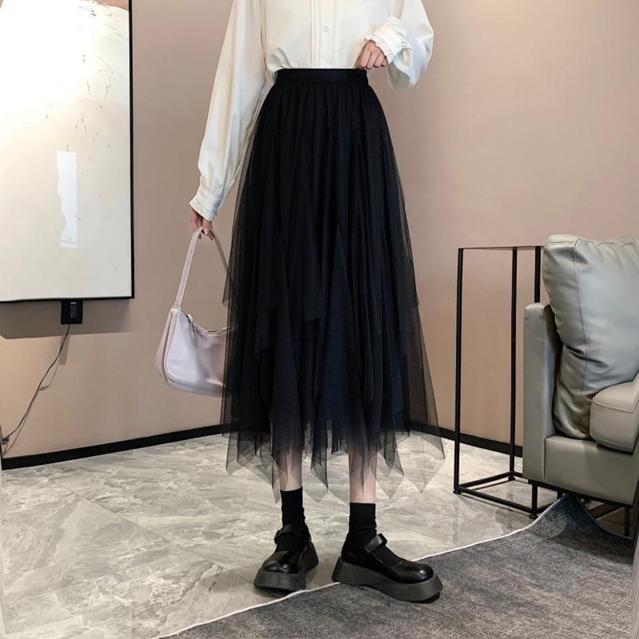 メッシュスカート スプリング秋物ハイウェストAラインプリーツ 春物 オータム ウエスト ミドル丈 コーデ Marchs97174539617