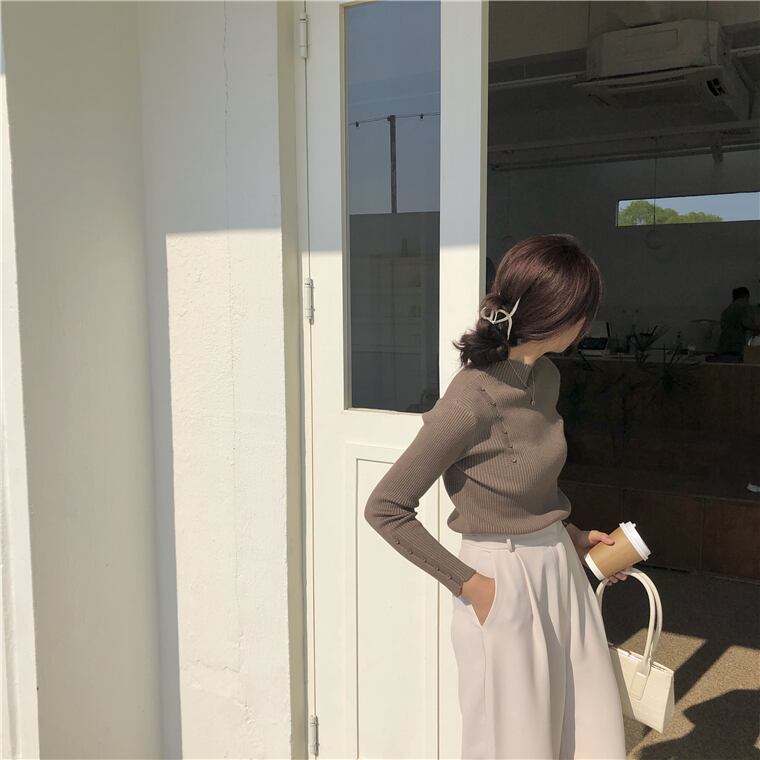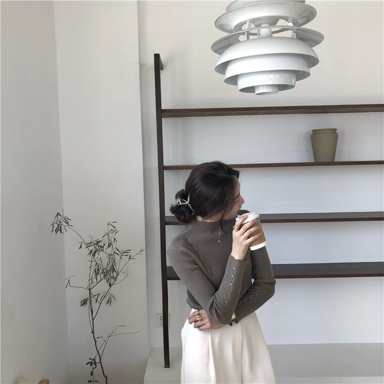 ブラックセーター ゆったりシャツ 夏服ボタンニットトップス ウィンター ロング 夏物 冬物 長袖 コーデ Marchs99012585812