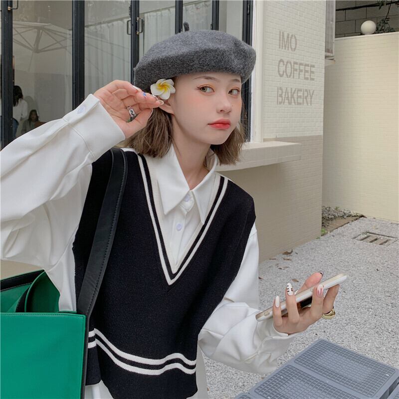シャツニットセーター スプリング秋物ルーズアウタートップス 春物 オータム ステッチ コーデ Marchs47094875533