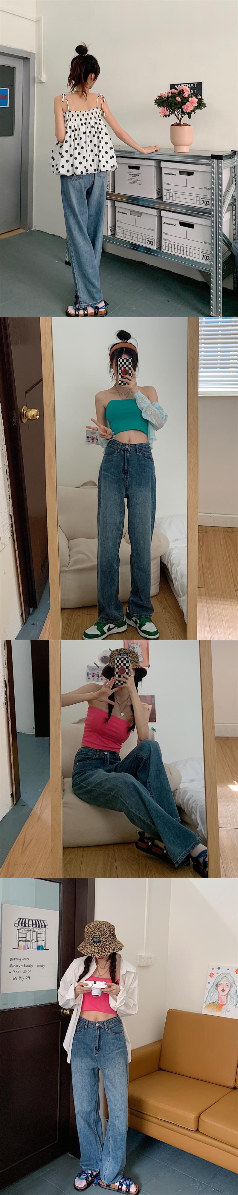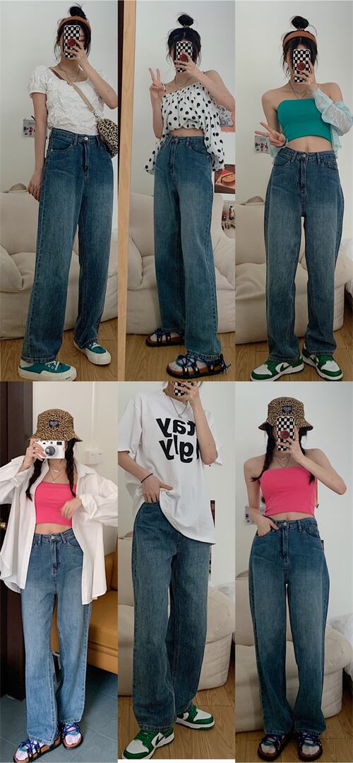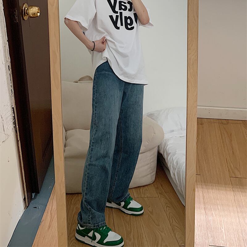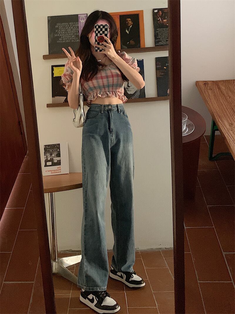 ジーンズ スプリング秋物韓国ファッションスタンダードハイウェストウェストルーズワイドレッグパンツ レトロ 春物 オータム ワイドパンツ スタイル ウエスト コーデ Marchs14833519734