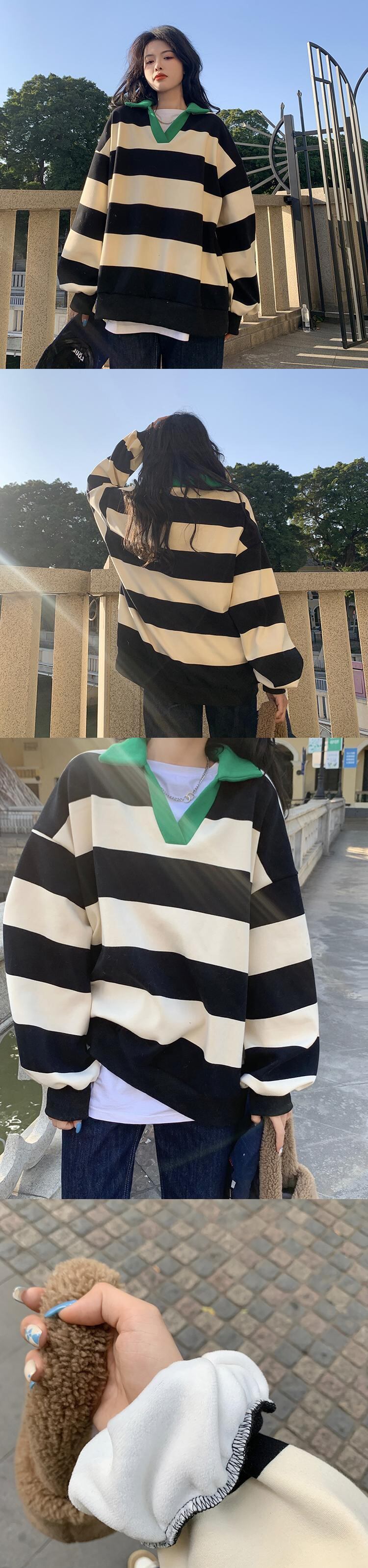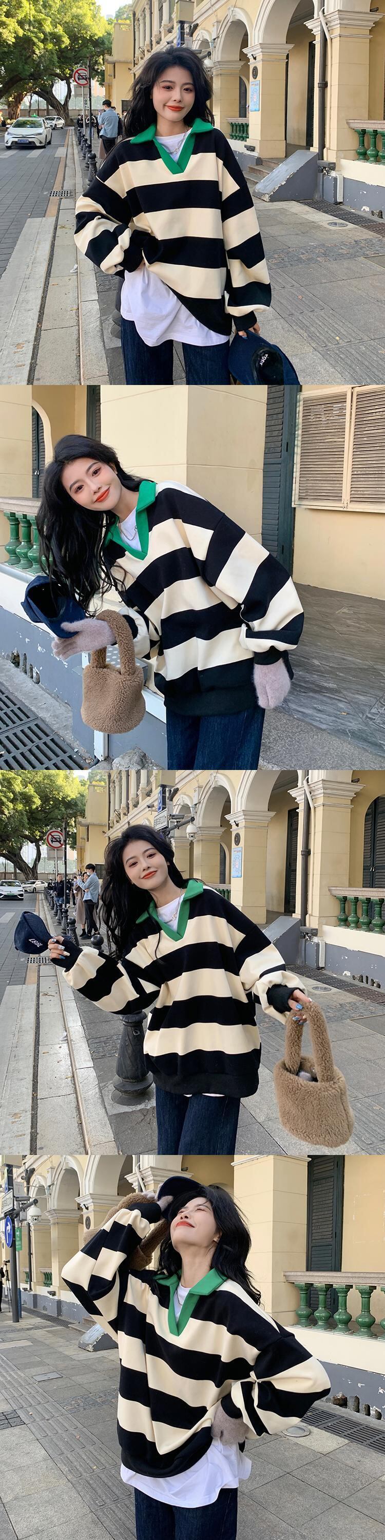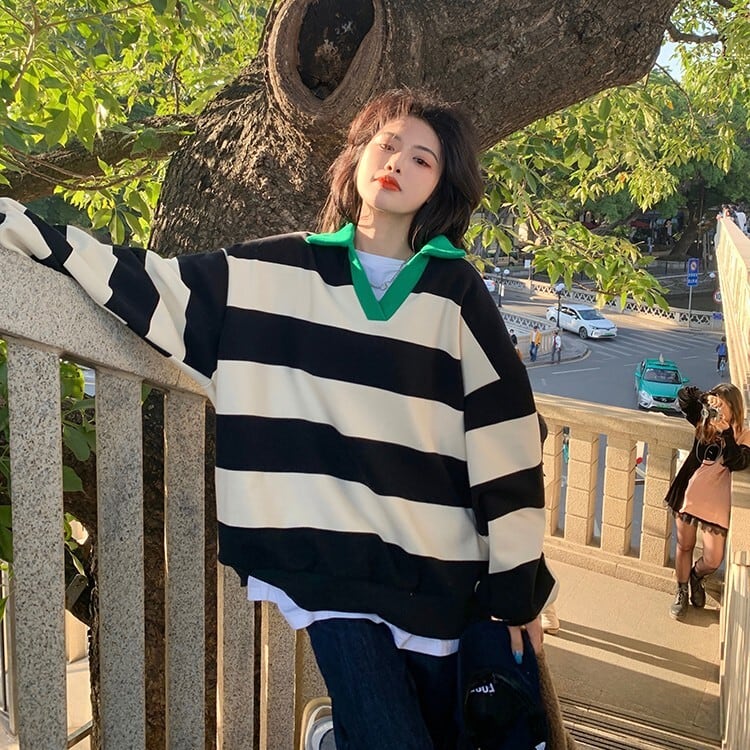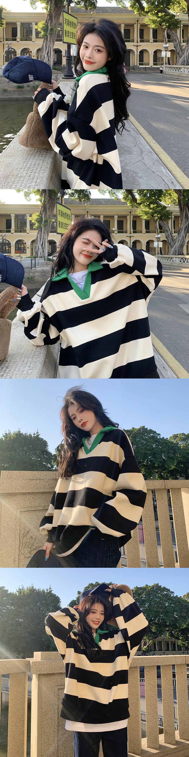 ストライプカラーセーター スプリング秋物スタンダードNEWオーバーサイズトップス レトロ 春物 オータム コーデ Marchs75841487648