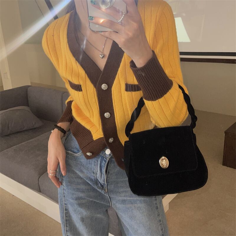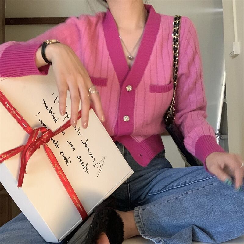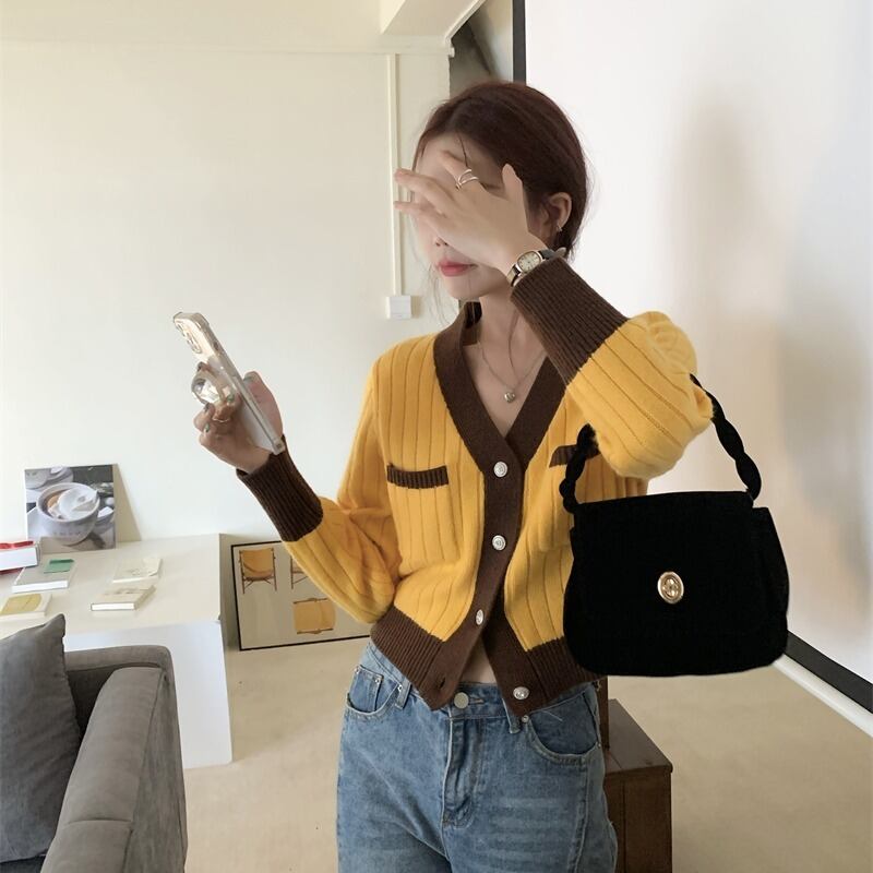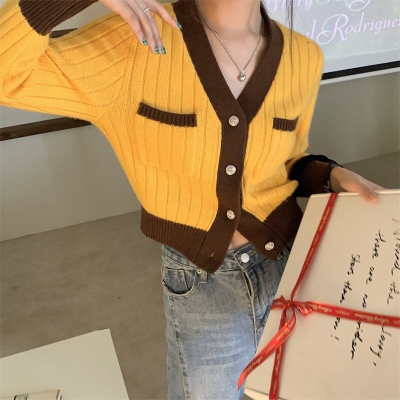 Vネックニットカーディガン夏服ショートトップス スリムセーター コート 夏物 コーデ Marchs72997190895