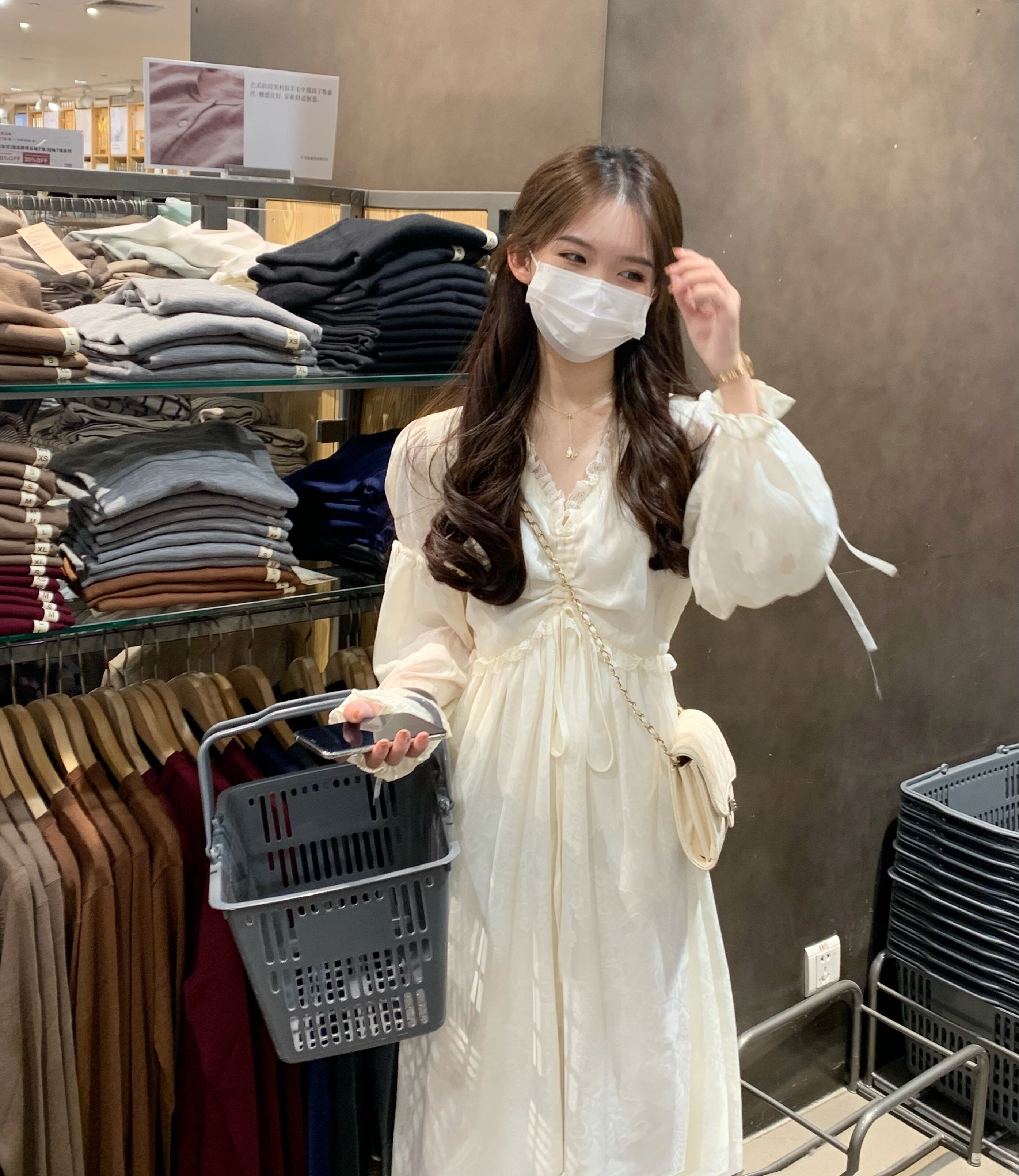 スプリングワンピースホワイトスタイルロング 春物 コーデ Marchs3885819445