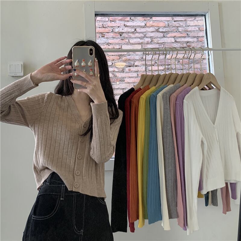 夏服Vネックニットゆったりシャツ カーディガン薄手トップス ピンク 夏物 NEW コーデ Marchs70649057508