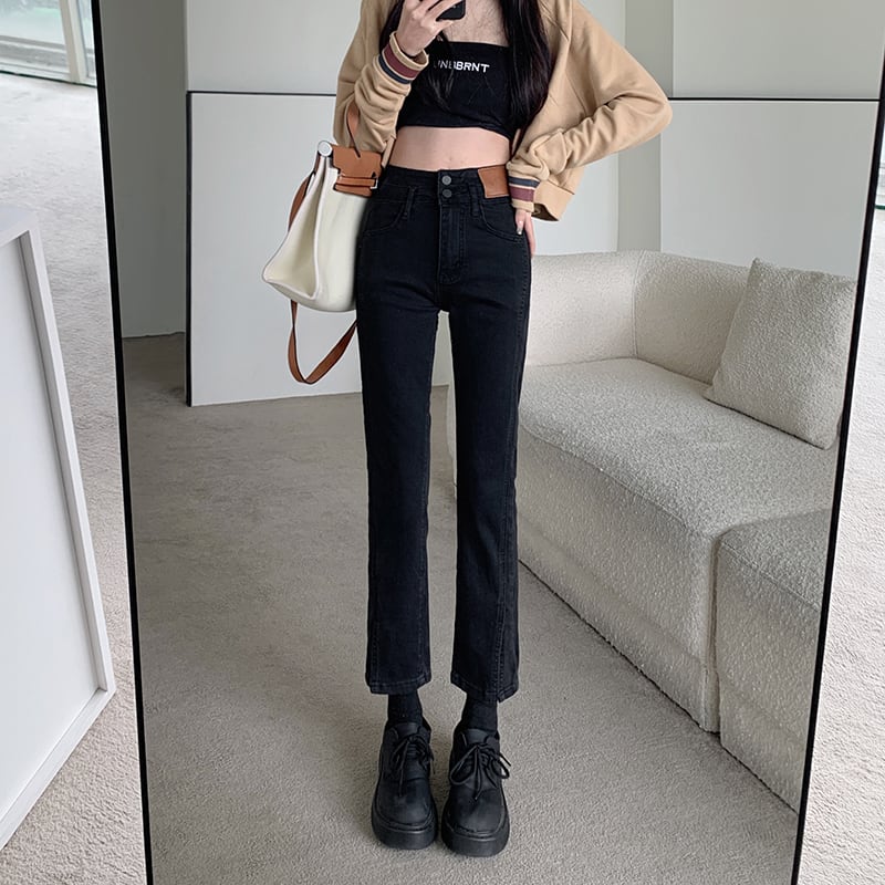 ブラックジーンズ スプリングパンツ ハイウェスト 春物 ウエスト コーデ Marchs97170279461
