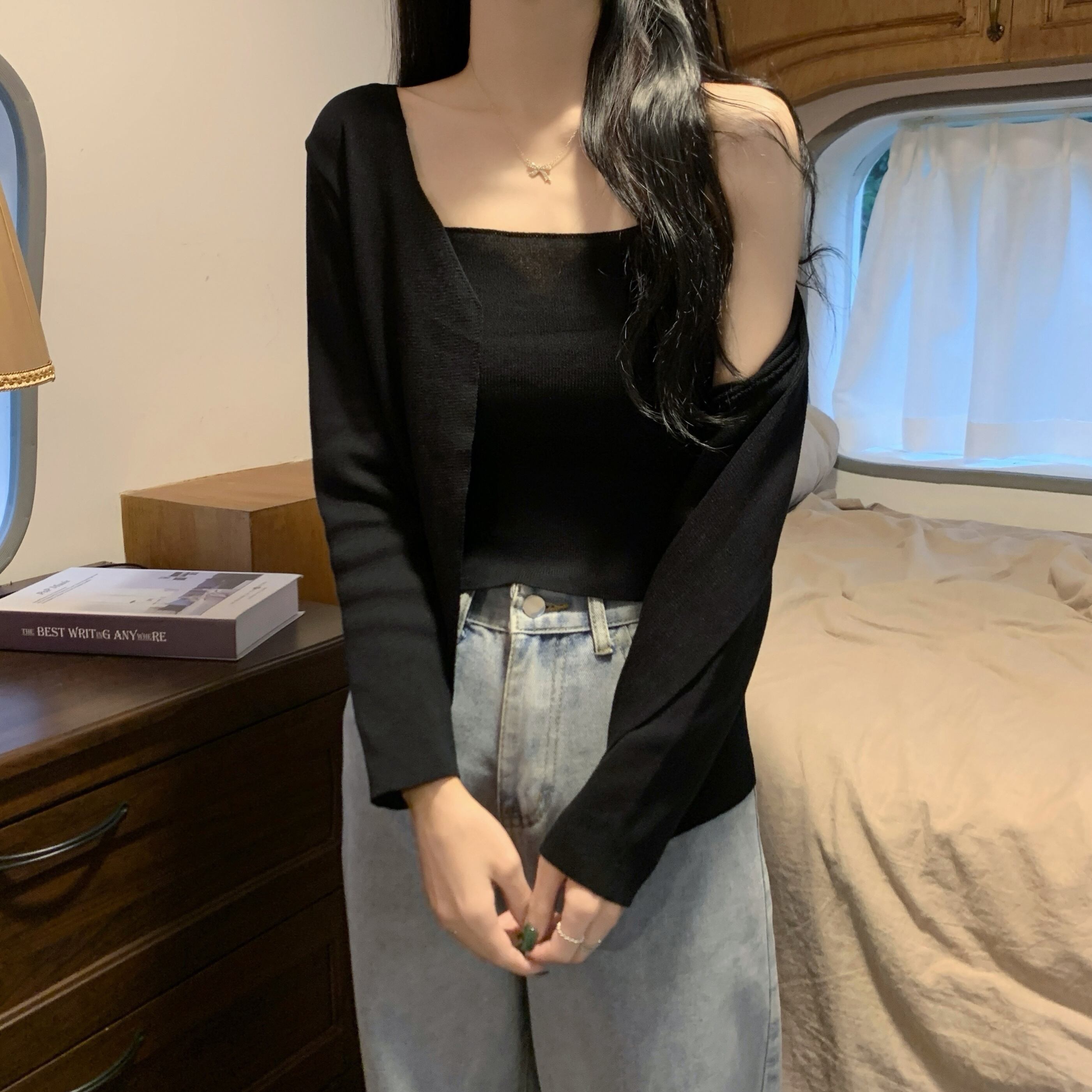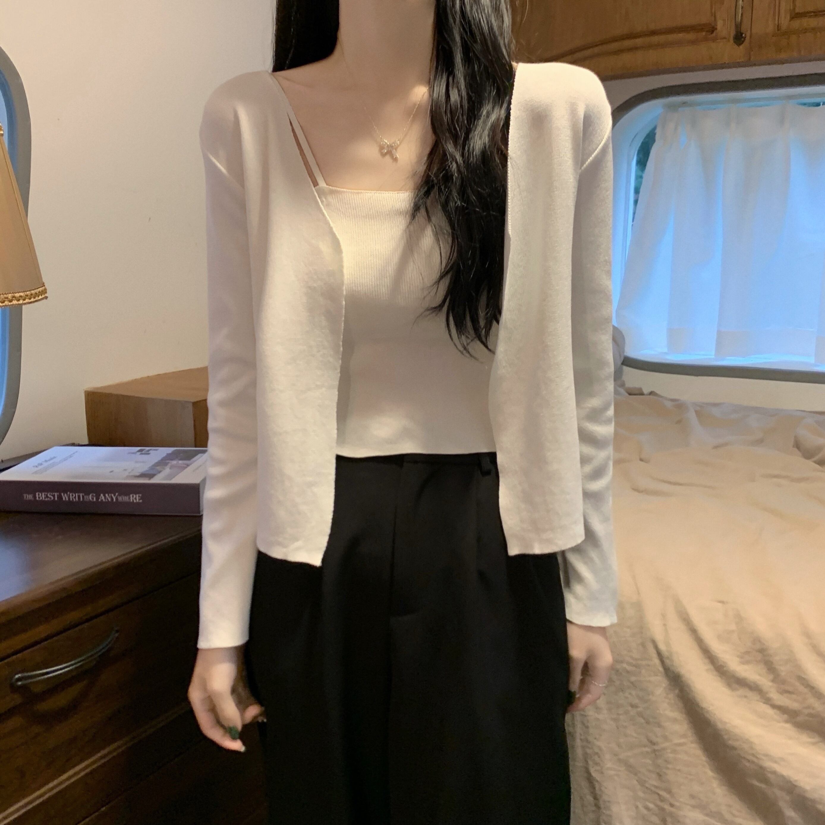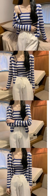 夏服薄手ショートコート トップス ストライプニットカーディガン 夏物 コーデ Marchs73006655913