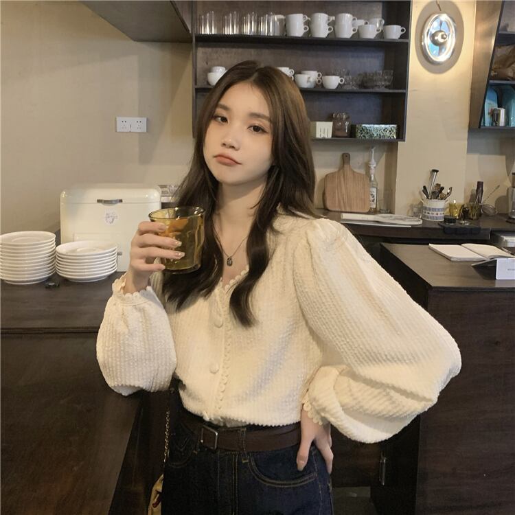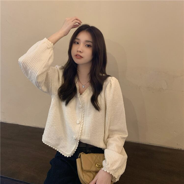 レースVネックスリーブシャツ スプリングショートトップス 大人ガーリー スウィート キュート カジュアル 春物 コーデ Marchs41938240765
