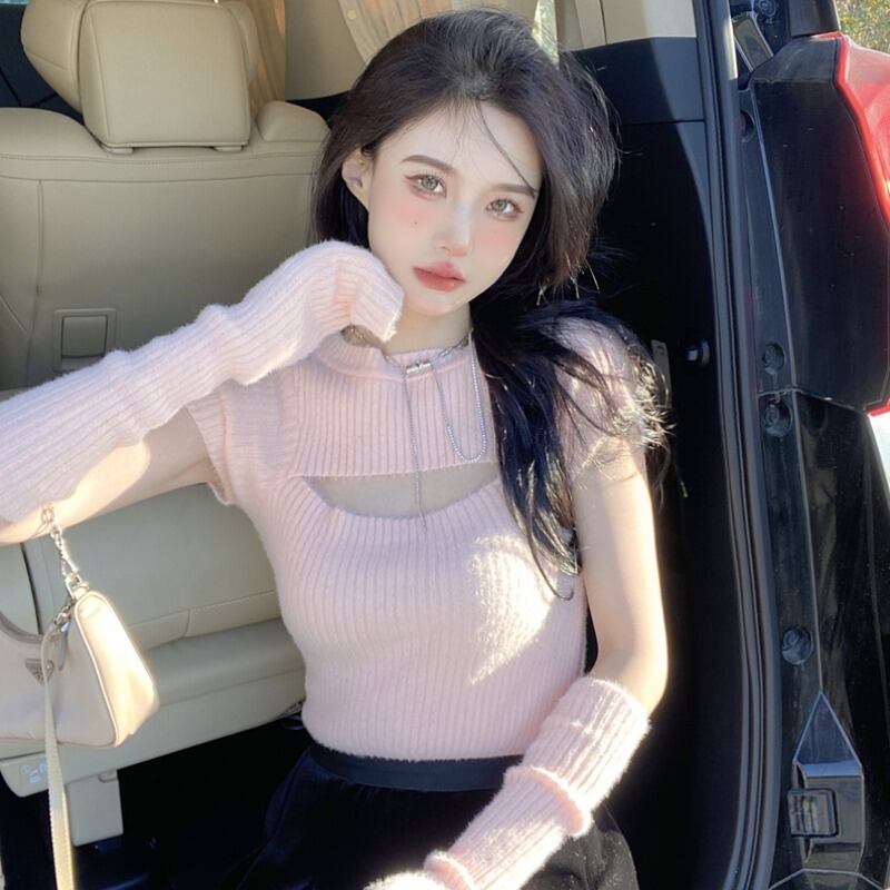 ゆったりシャツ スリムセーター ニットトップス ピンク ピュア コーデ Marchs80273990634