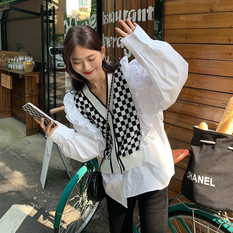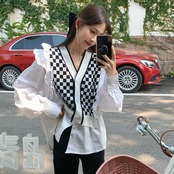韓国ファッションスタイルシャツ スプリングVネックルーズ薄手トップス ロング 春物 長袖 コーデ Marchs73805080297