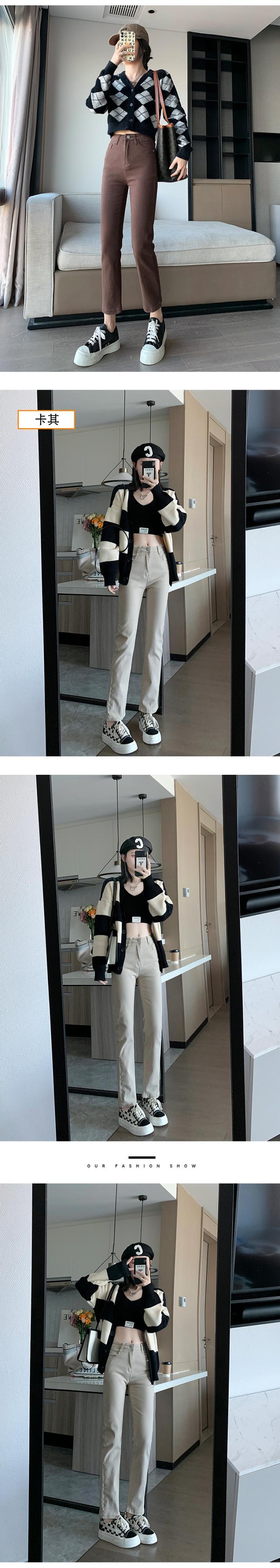 ジーンズ レディース薄手ハイウェスト夏服ブラウンパンツ 夏物 ウエスト コーデ Marchs49490859538
