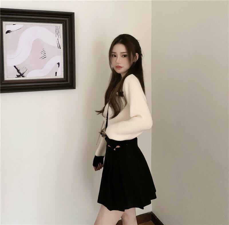 セーター カーディガンブラックプリーツスカート カジュアル コーデ Marchs28125355487