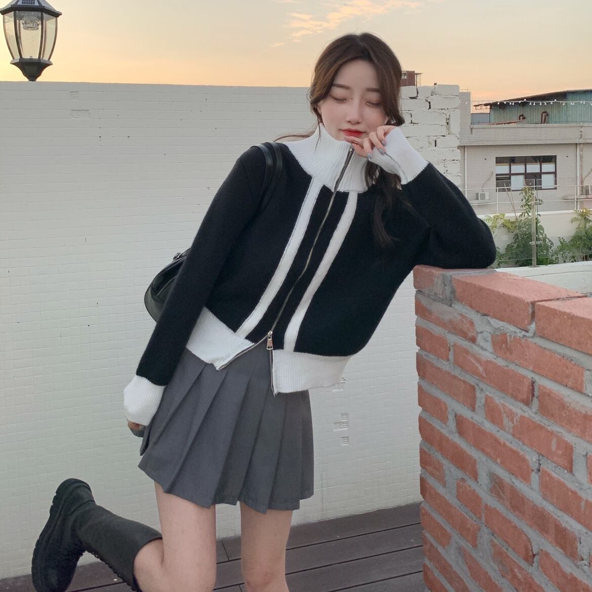 ジッパーニットカーディガントップス スプリング秋物スタイルアウターカラーセーター ジャケット 春物 オータム コーデ Marchs13100846420