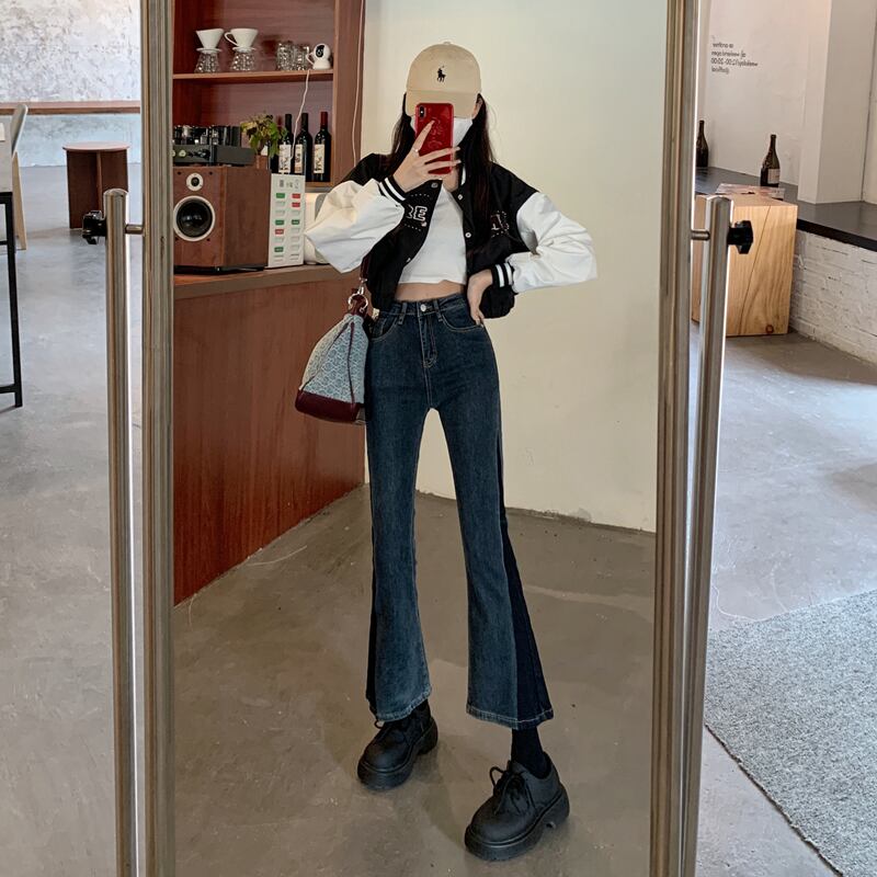 夏服ジーンズ ハイウェストパンツ レッド 夏物 ウエスト コーデ Marchs5289060672