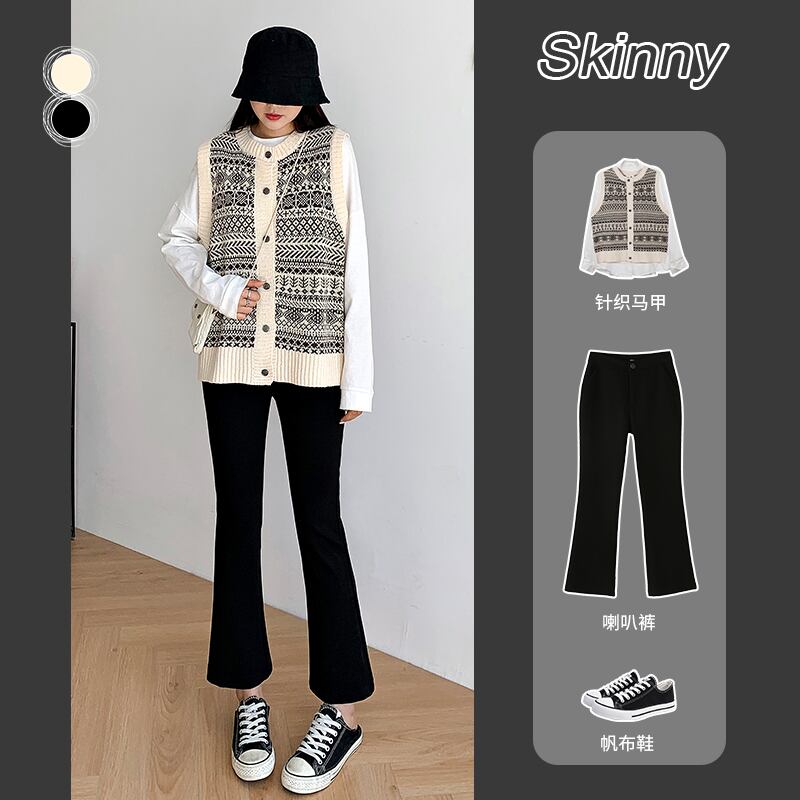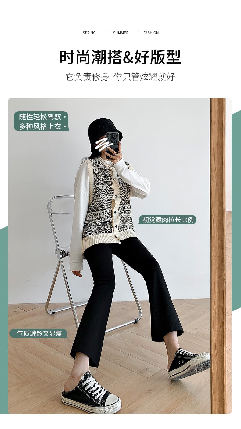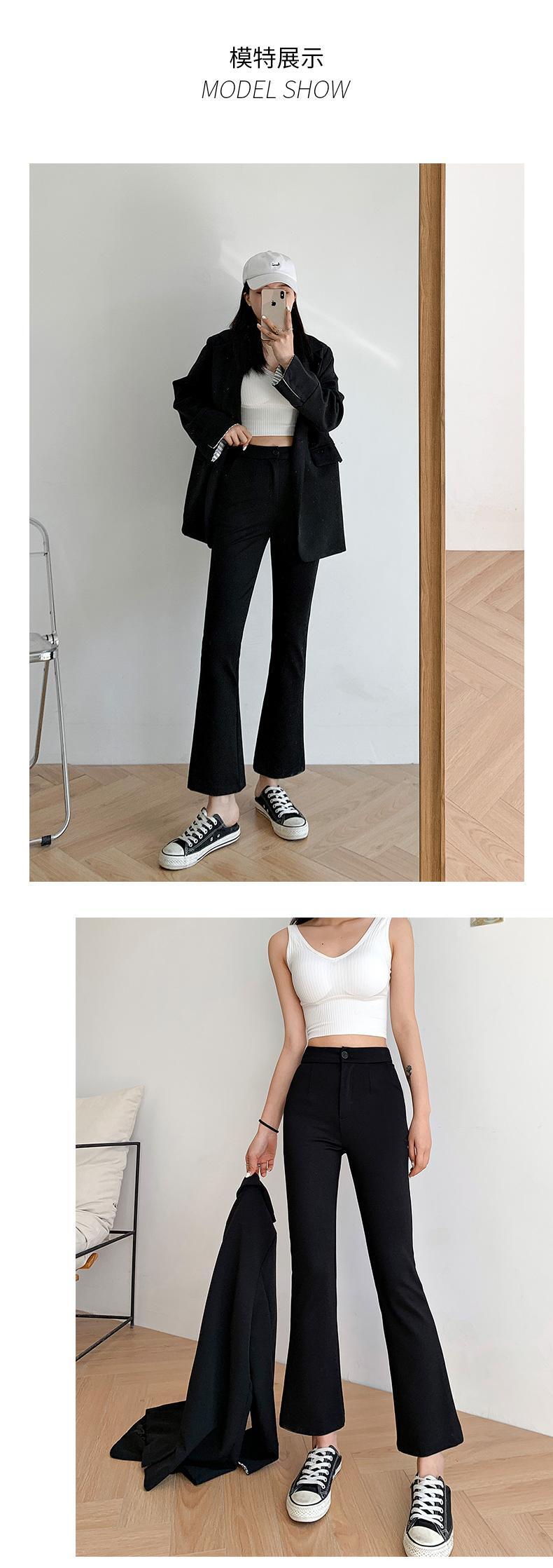 ショートハイウェスト秋物スリムフィット薄手ストレッチカジュアルパンツ エラスティック 伸縮 オータム ウエスト コーデ Marchs54477299296