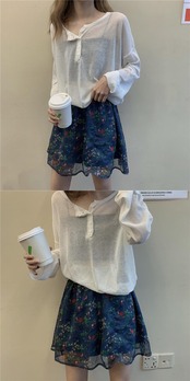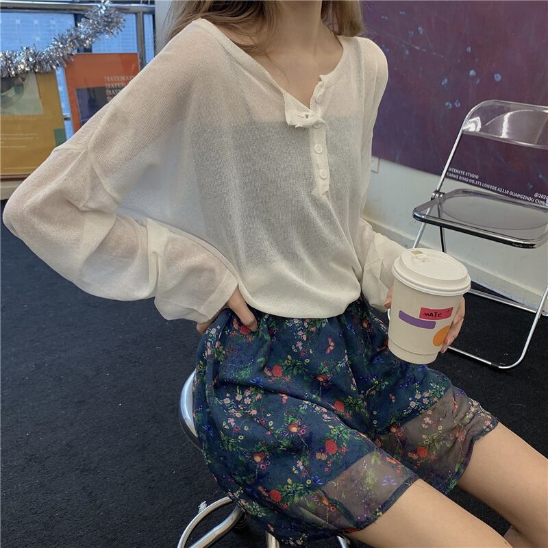 韓国ファッションNEWブラックTシャツレディースルーズ薄手夏服プルオーバー ブラウス トップス ロング 夏物 シルク スタイル 長袖 コーデ Marchs54151976422