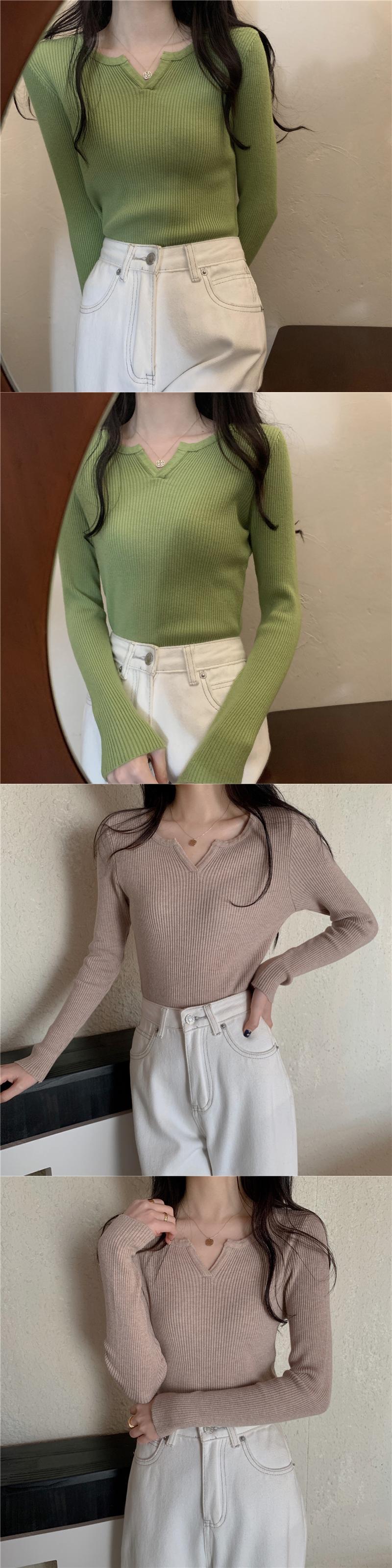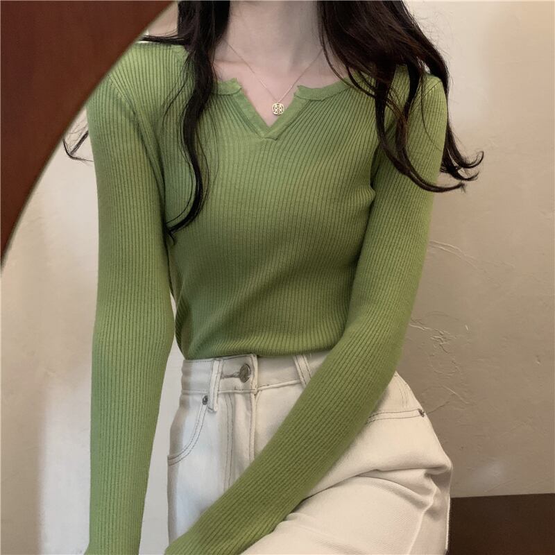 夏服グリーンゆったりシャツ Vネックセーター スタイルトップス 夏物 コーデ Marchs67361242807