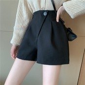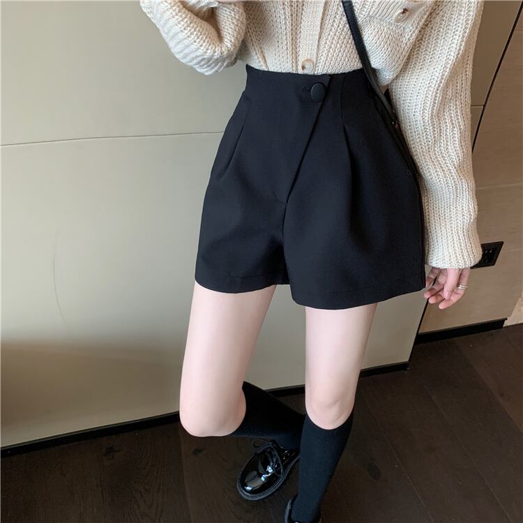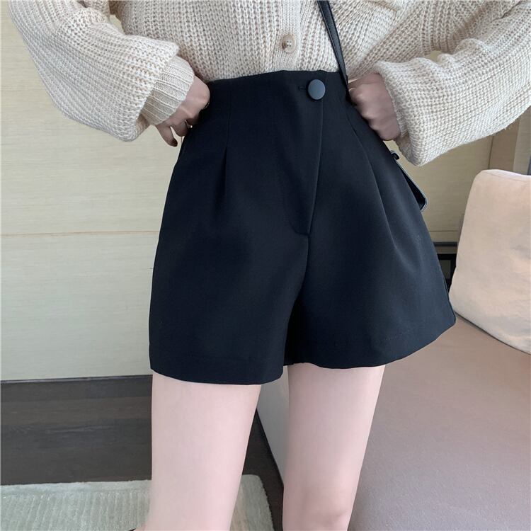 ブラックハイウェストショーツ 夏服カジュアル薄手パンツ Aラインブーツ 靴 シューズ 夏物 ウエスト コーデ Marchs40015715426