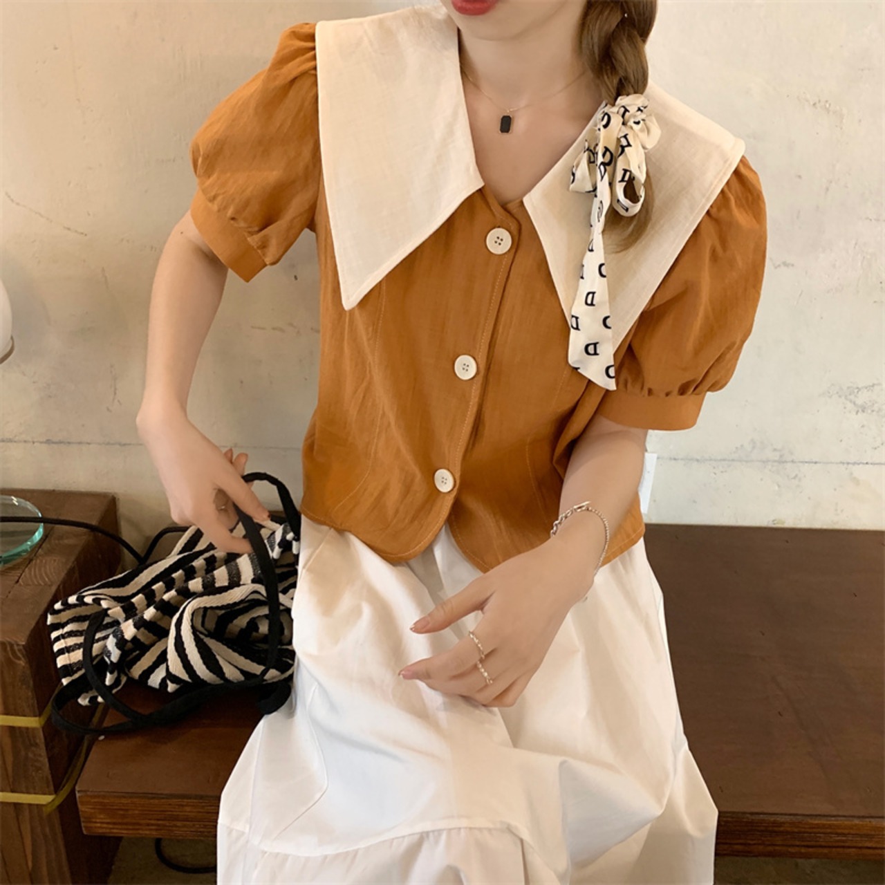 カラーシャツ 半袖スリーブ夏服ウェストトップス ショート ハーフスリーブ 夏物 ウエスト コーデ Marchs22952636349