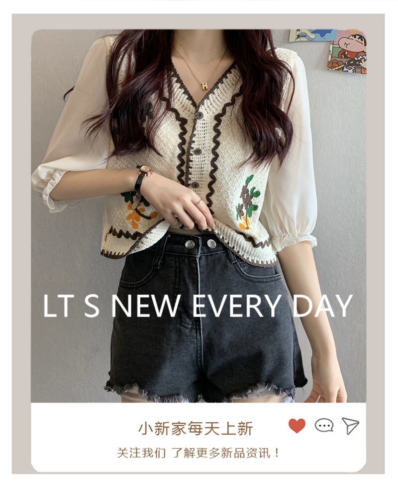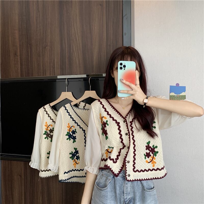夏服スタンダードVネック刺繍ショートニットカーディガン薄手レディーストップス レトロ 夏物 コーデ Marchs23851245981