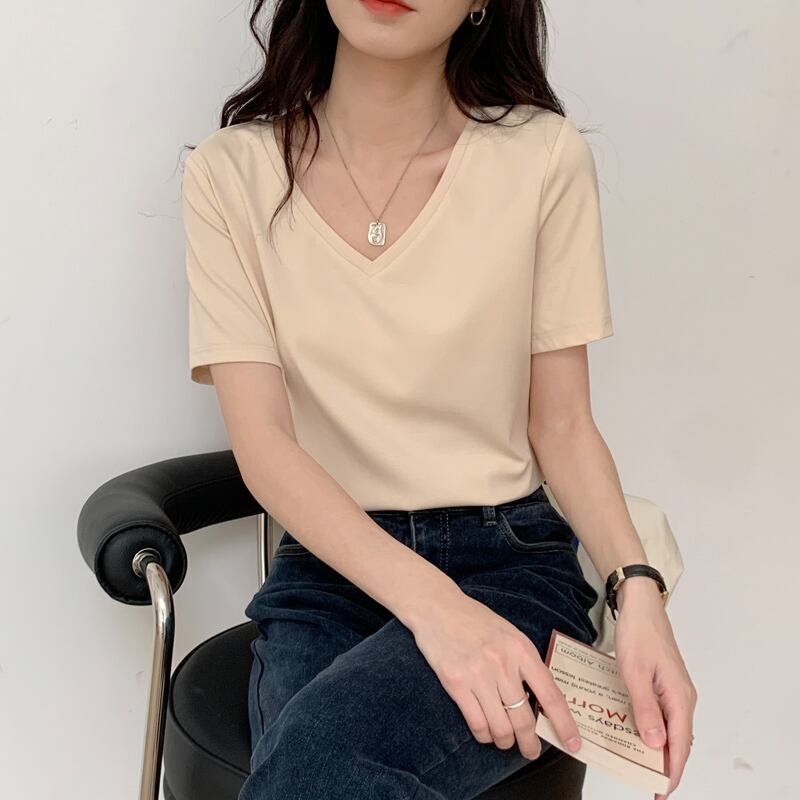 夏服ルーズVネックTシャツシャツ 薄手ホワイトニットゆったりトップス 夏物 コーデ Marchs89236470462