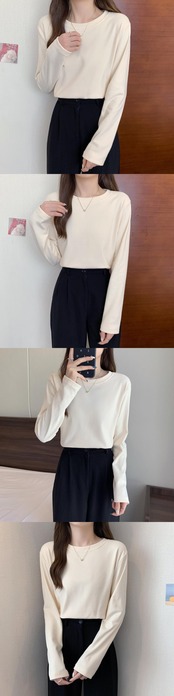 ゆったりシャツ スプリングスタイルホワイトラウンドネックTシャツトップス ロング 春物 Oネック 長袖 コーデ Marchs37988694245