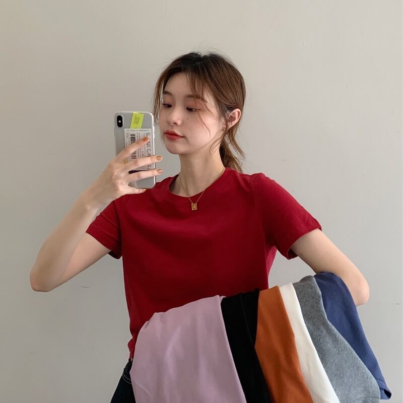 ベーシックルーズTシャツシャツ 夏服ラウンドネックゆったりソリッド カラートップス コットン 夏物 Oネック ソリッドカラー コーデ Marchs82111599687