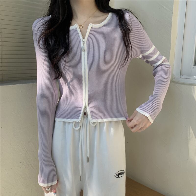 夏服ジッパーニットカーディガンショートトップス ロング 夏物 長袖 コーデ Marchs94330948418