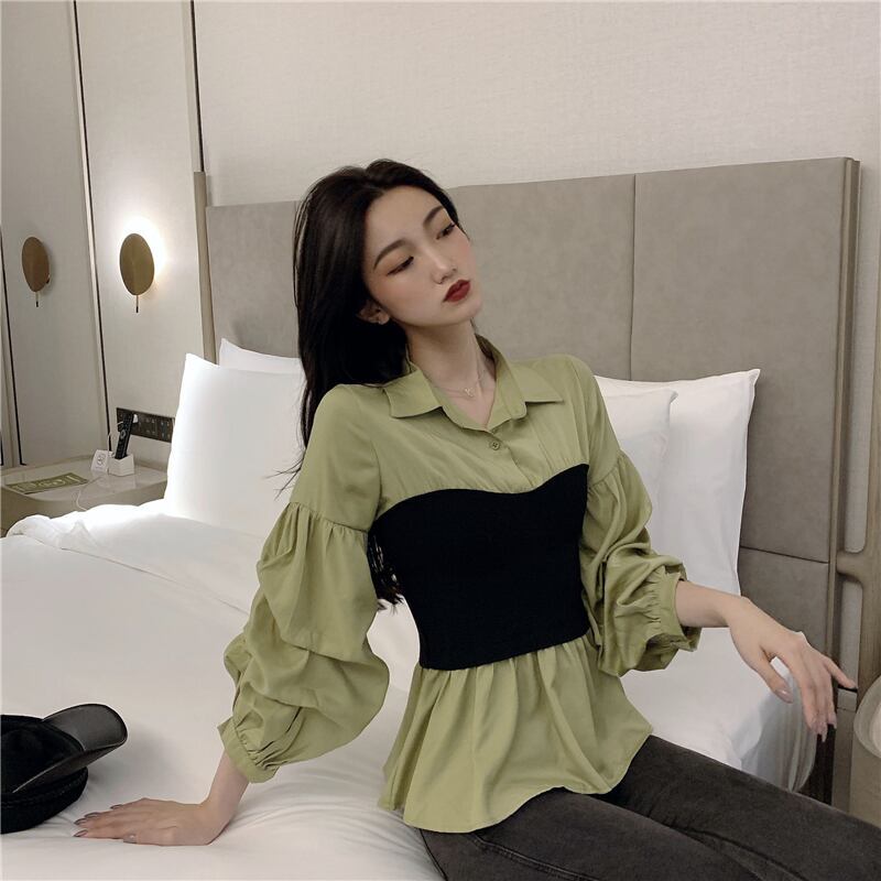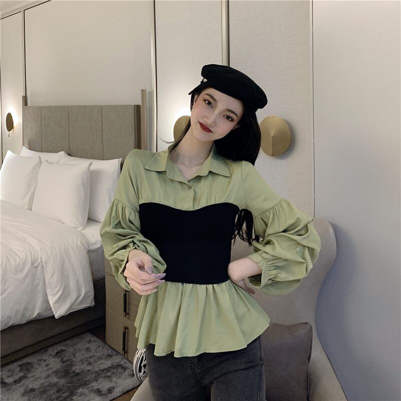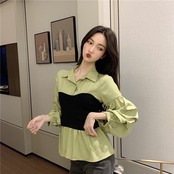 シャツ スプリング秋物ウェストスタンダードトップス ロング レトロ 春物 オータム 長袖 ウエスト コーデ Marchs4748004905
