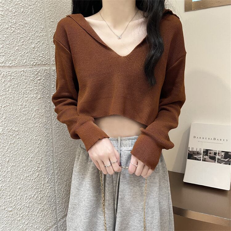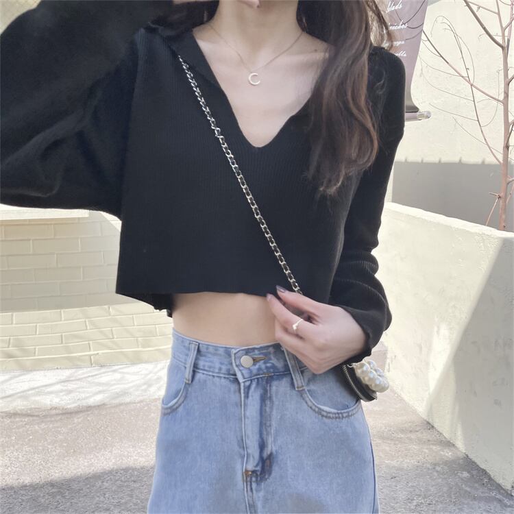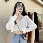 Vネックニットセーター ショートトップス 夏服ハイウェストTシャツNEWレディース ロング 夏物 シルク 長袖 ウエスト コーデ Marchs18719029080