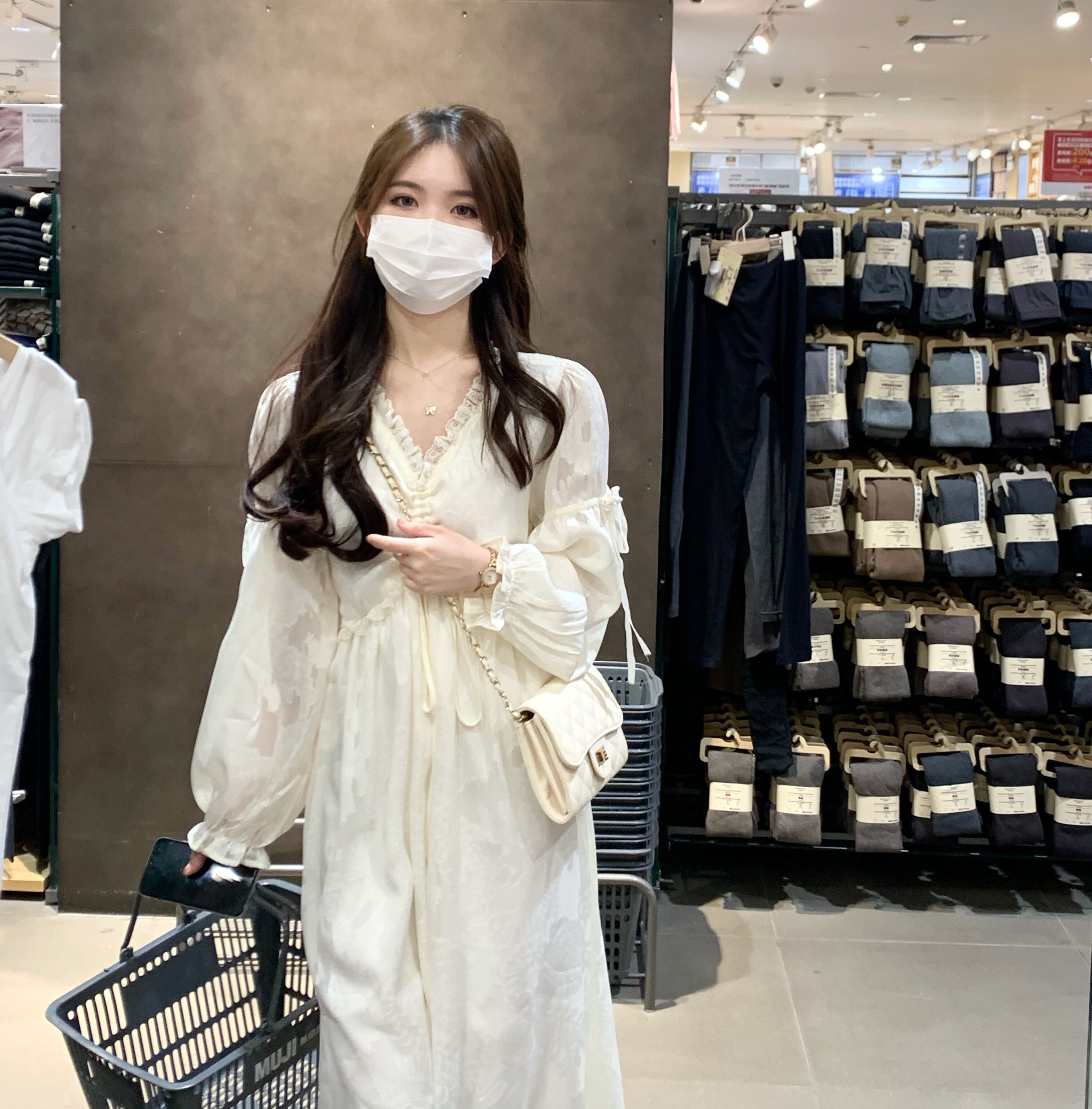 ホワイトスプリングスタイルVネックAラインワンピースレディーススカート ロング 春物 ピュア コーデ Marchs14187108278
