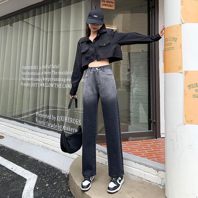 スタンダードブラックジーンズ 夏服ウェストルーズワイドレッグパンツ レトロ 夏物 ワイドパンツ ウエスト コーデ Marchs68559262012