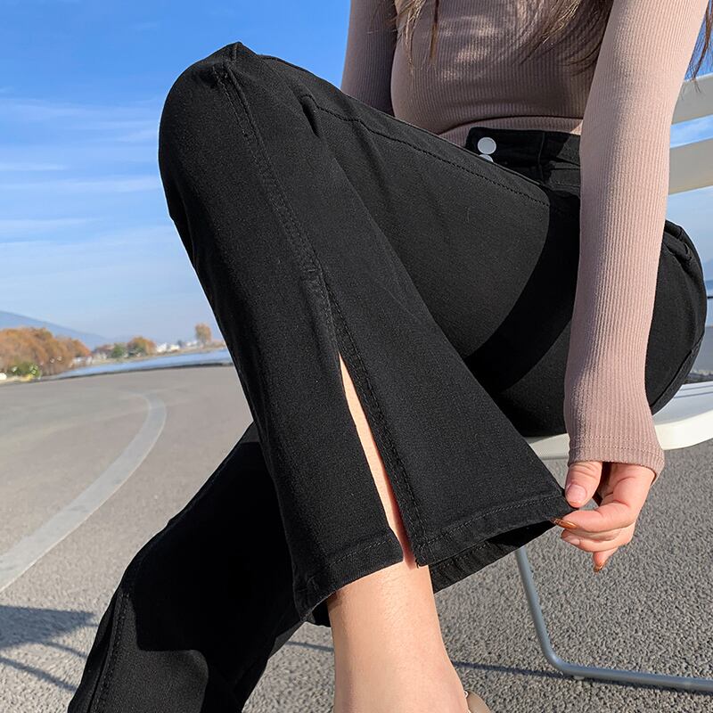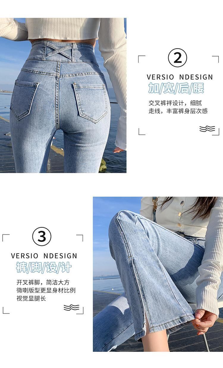 スプリングスリットジーンズ 夏服ハイウェストスリムパンツ レッド 春物 夏物 ウエスト コーデ Marchs36905253657